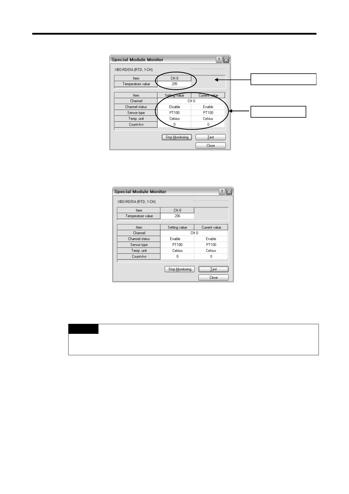 (e) [Test]: [Test] is used to change the parameters of the RTD input module. You can change the