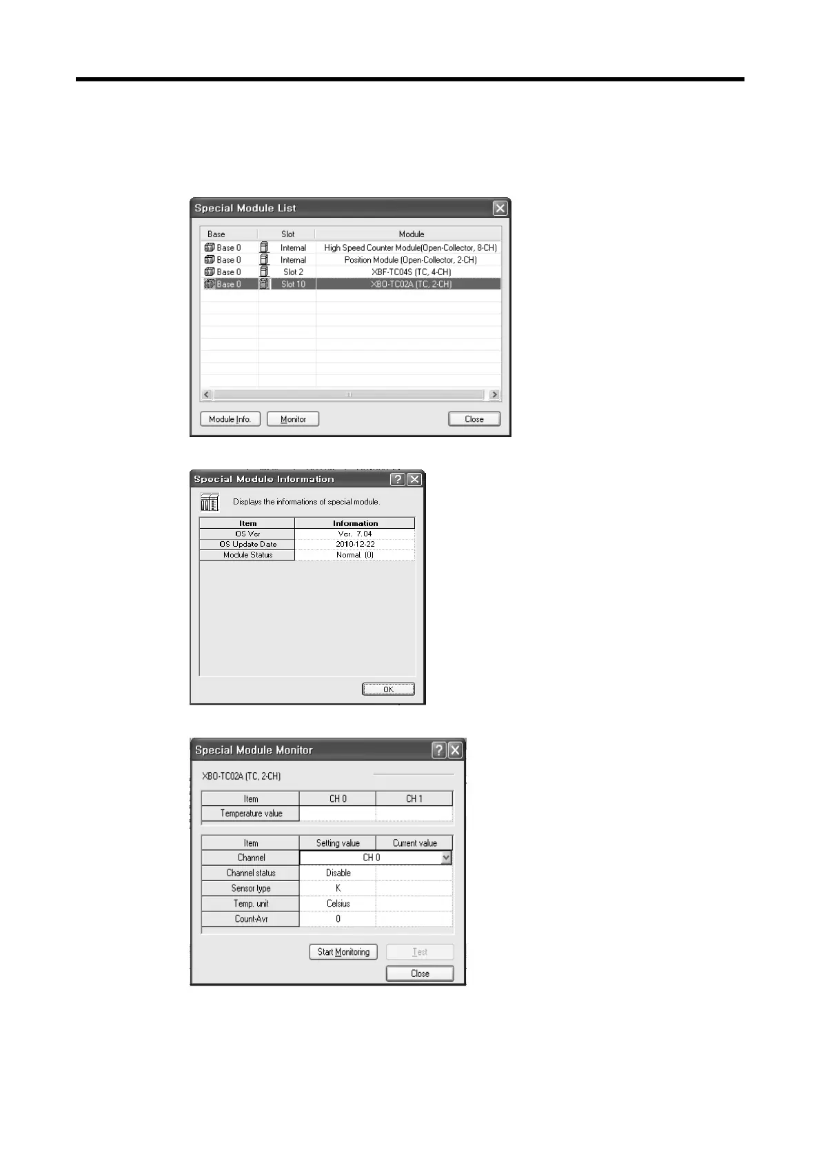 unit. ‘Special Module List’ screen is displayed as shown below and displays information of