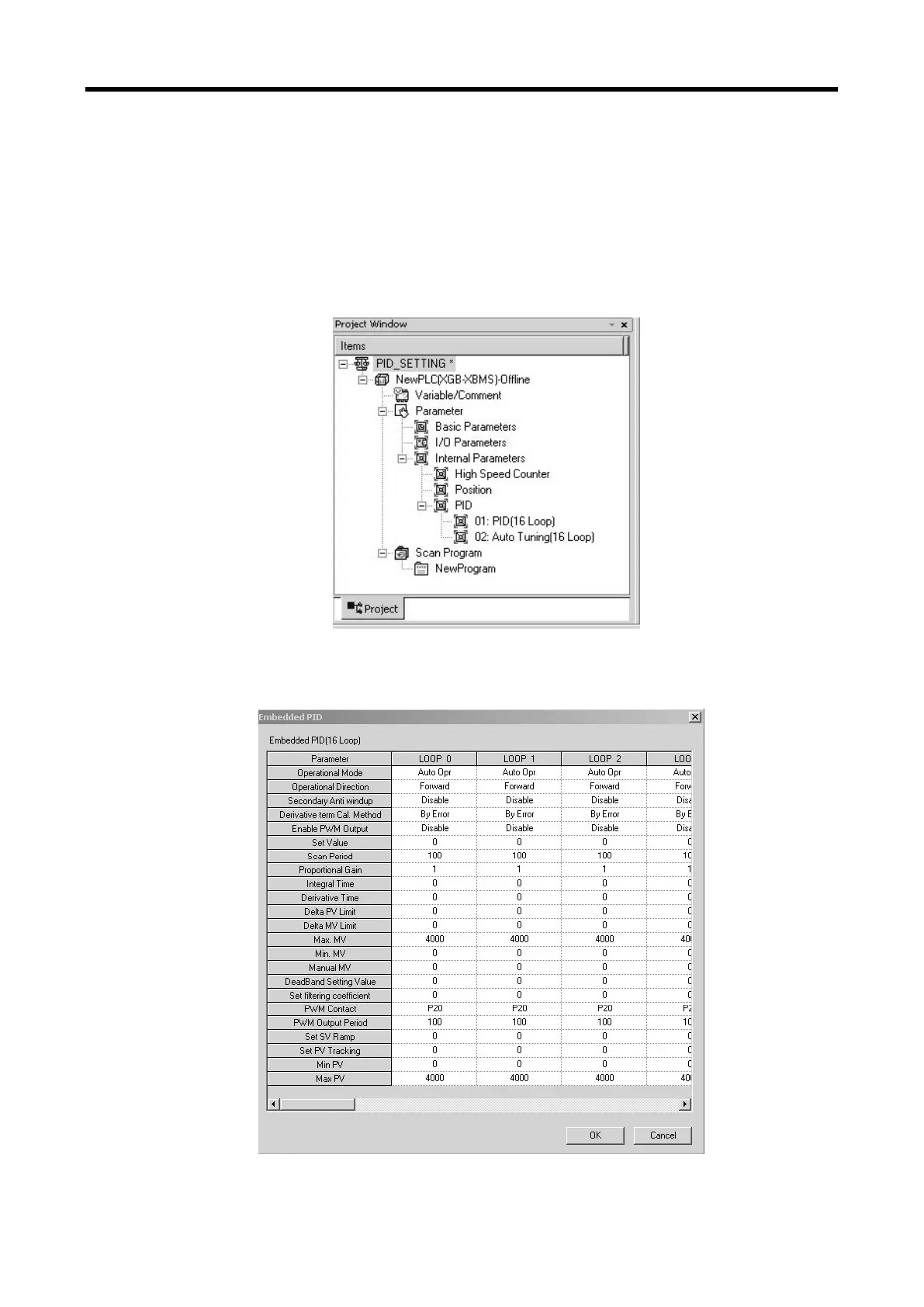 To use the built-in PID control function of XGB series, it is necessary to set PID control parameters by