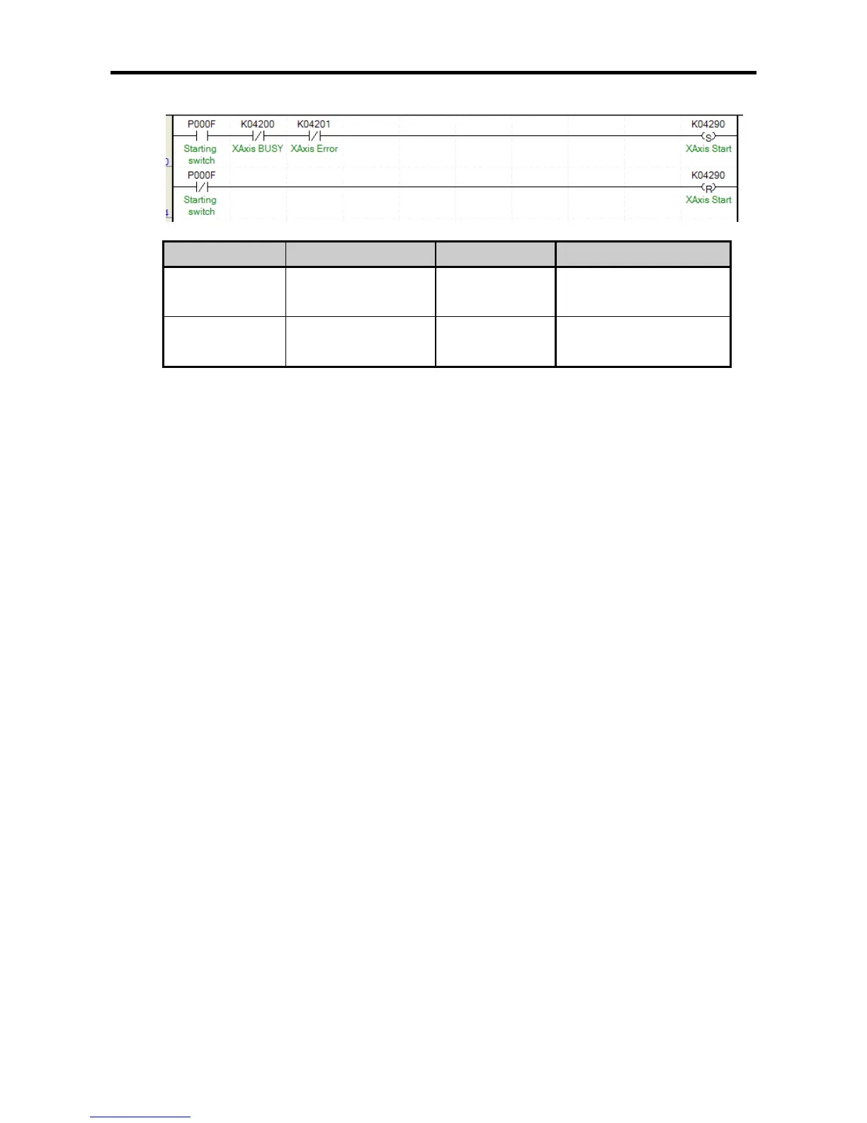 • Note that the set coil is used for axis X starting commanding flag (K4290) instead of ordinary coil