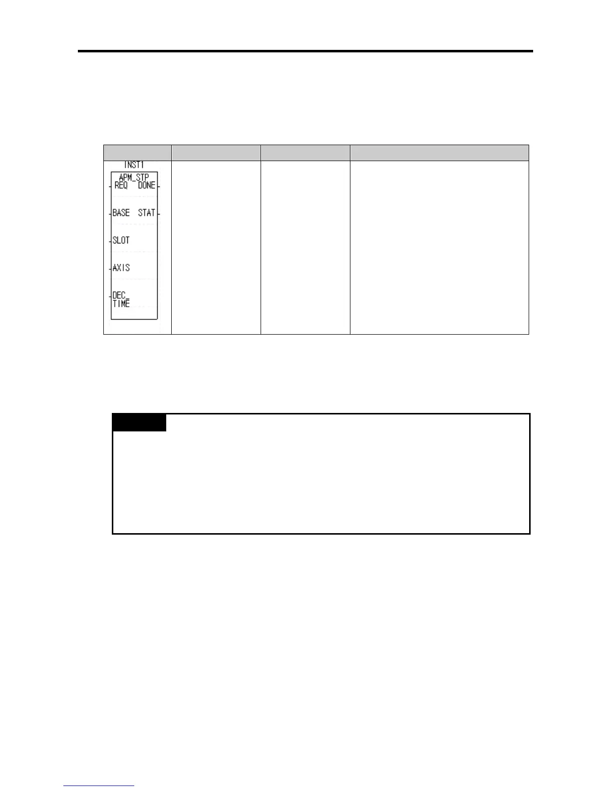 •This APM_STP instruction decelerates a running axis at the rate specified in the instruction to stop it.