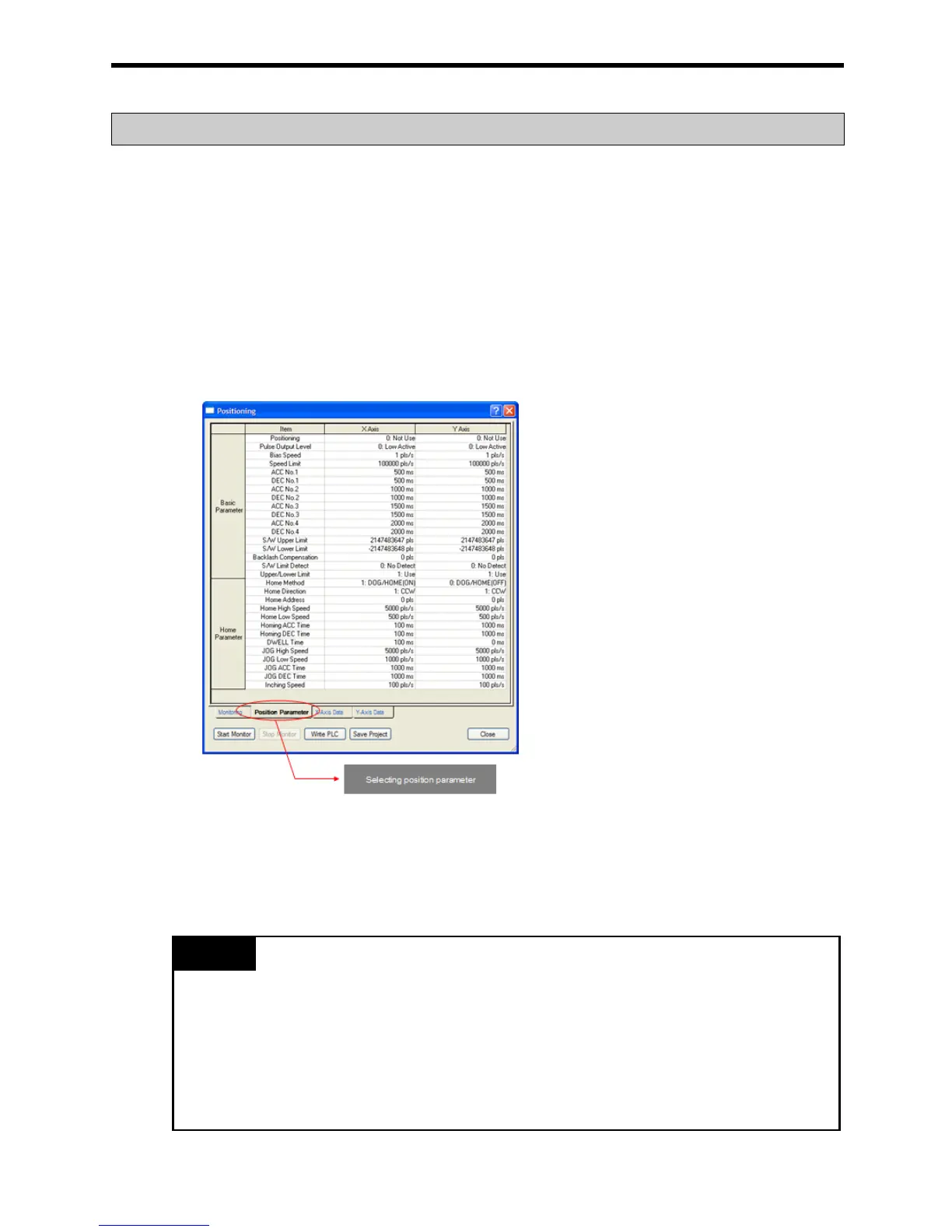 • If you execute ‘Write PLC,’ the position parameter set in the positioning monitoring package and