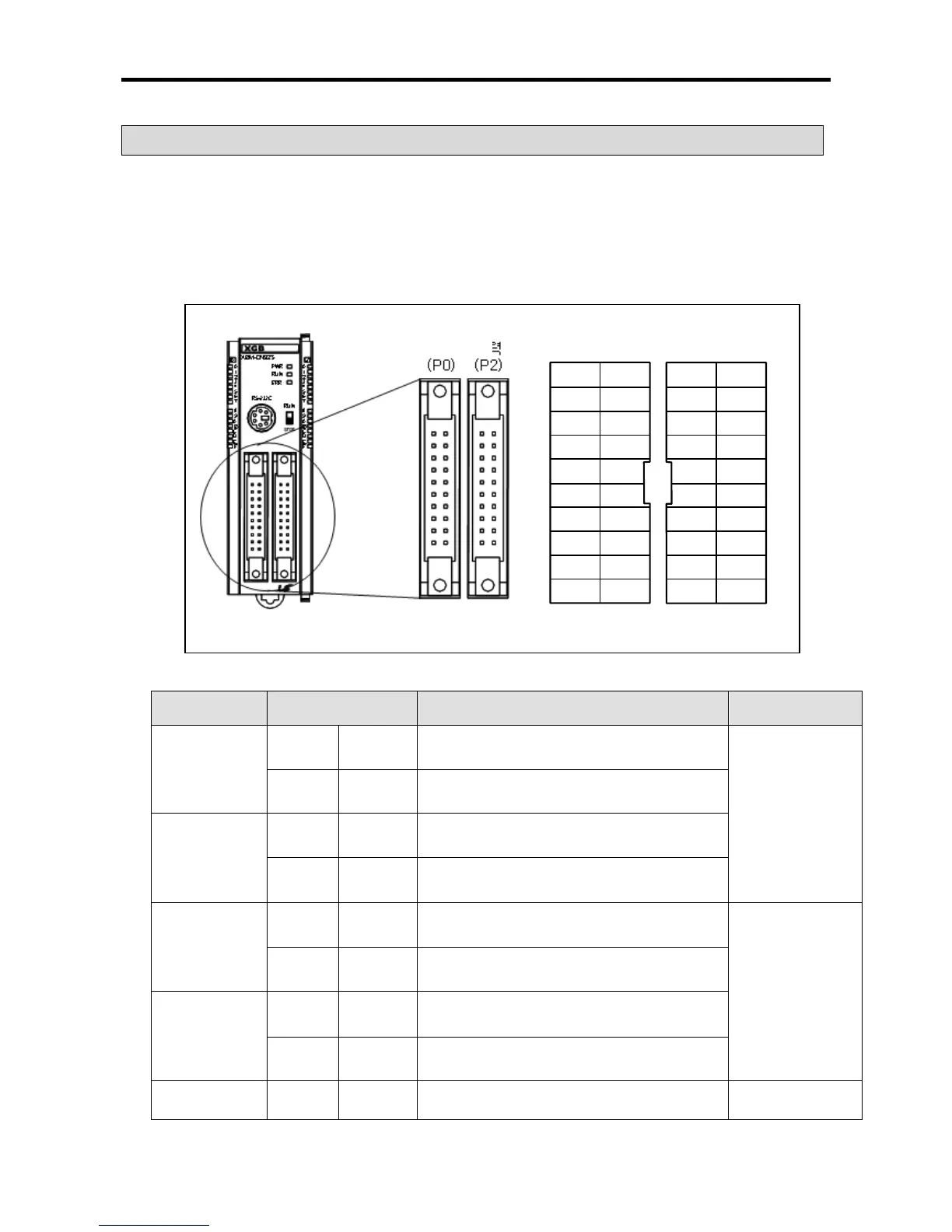 Pin array of I/O connector of XGB standard type transistor type basic unit is as follows.