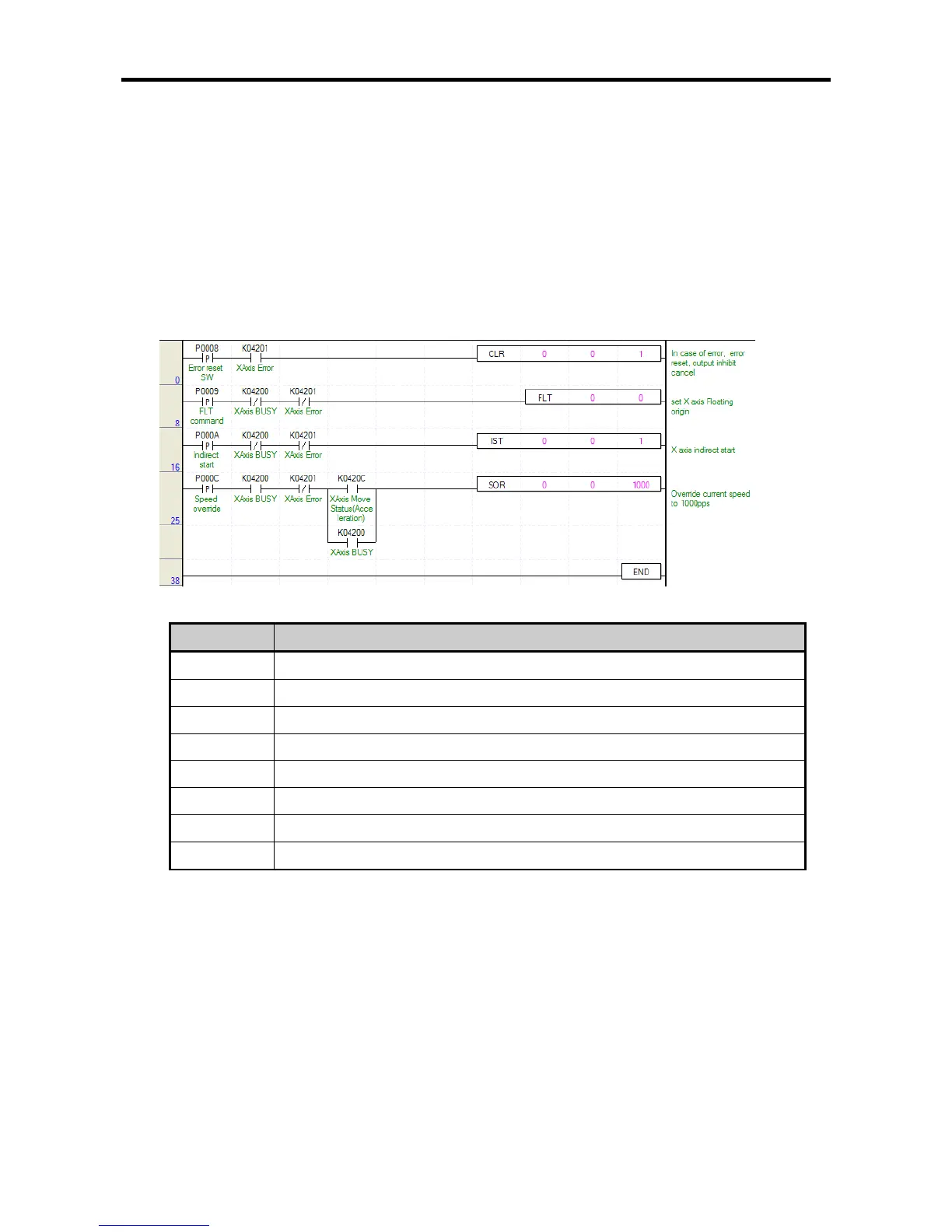 •P000D/%IX0.1.5 (jog normal direction) switch Off : axis X does jog stop.