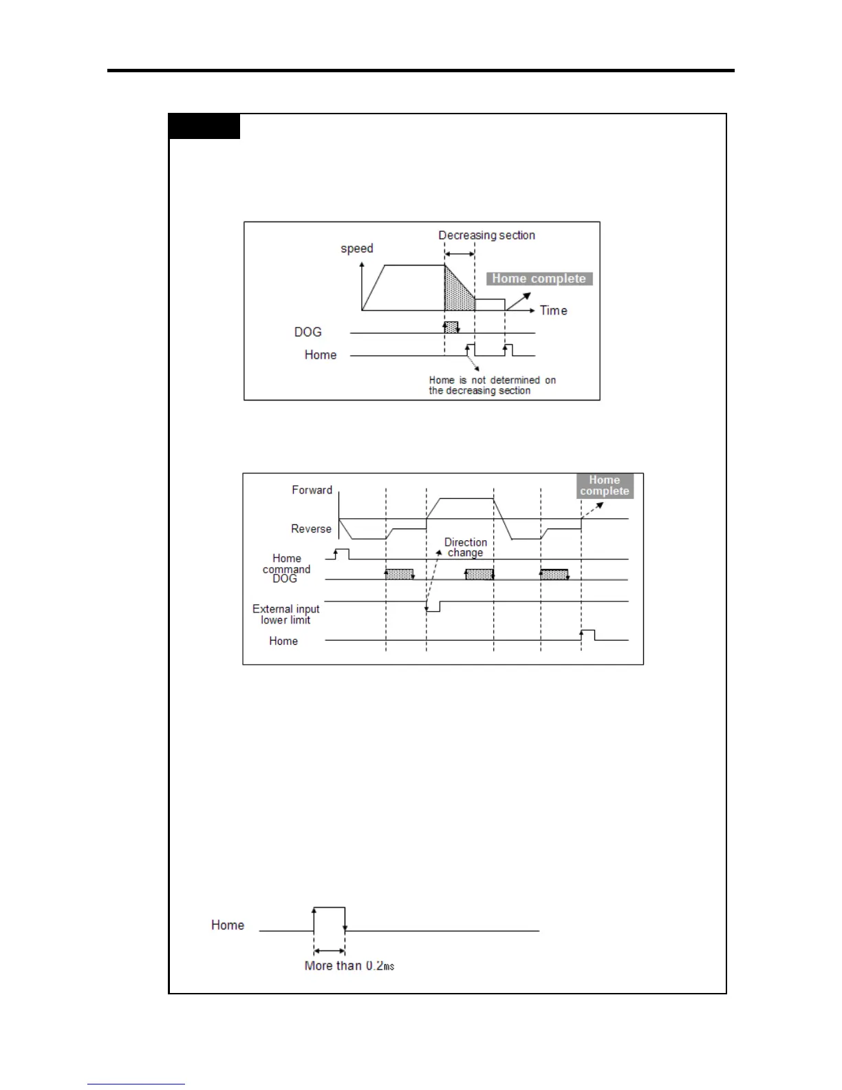 DOG signal changes Off->On->Off. (The following figure is example when home direction