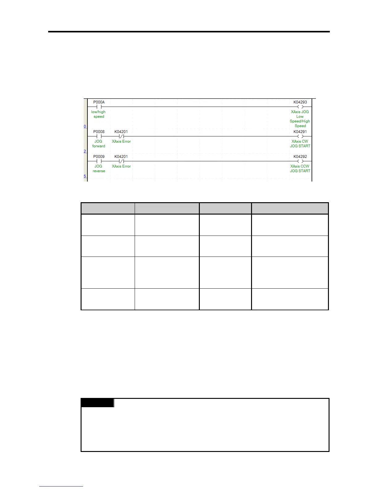 • The program above is an example of the program that carries out the jog operation in the
