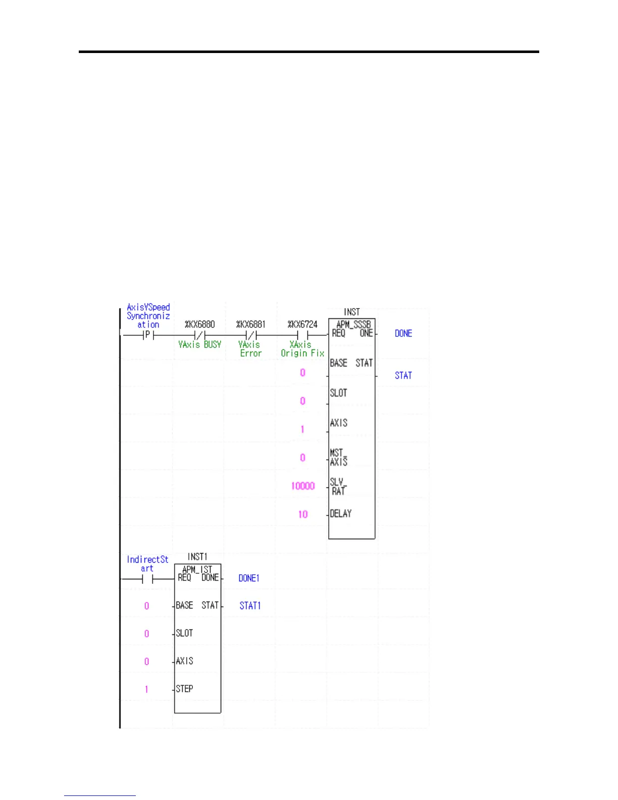 •The program below is to show exemplary operation of speed synchronization start instruction.