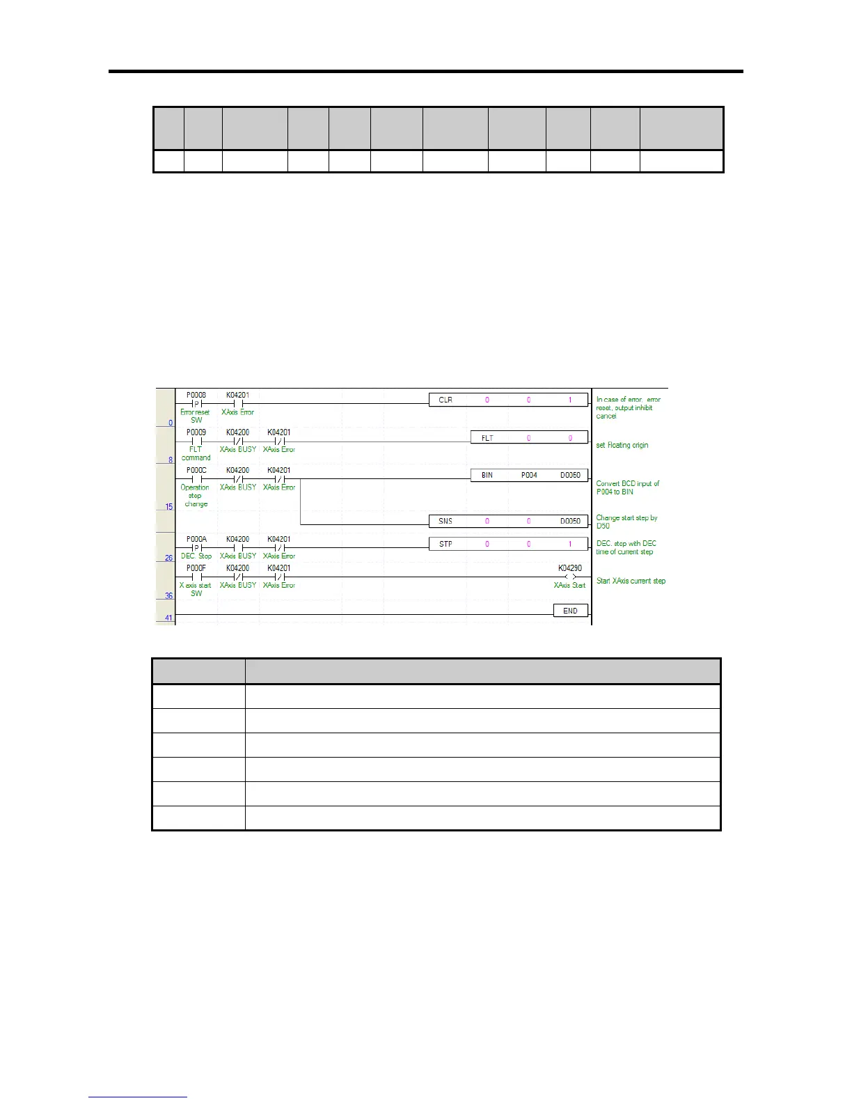 • The example program of conducting the single operation by setting the operation step is as follows.