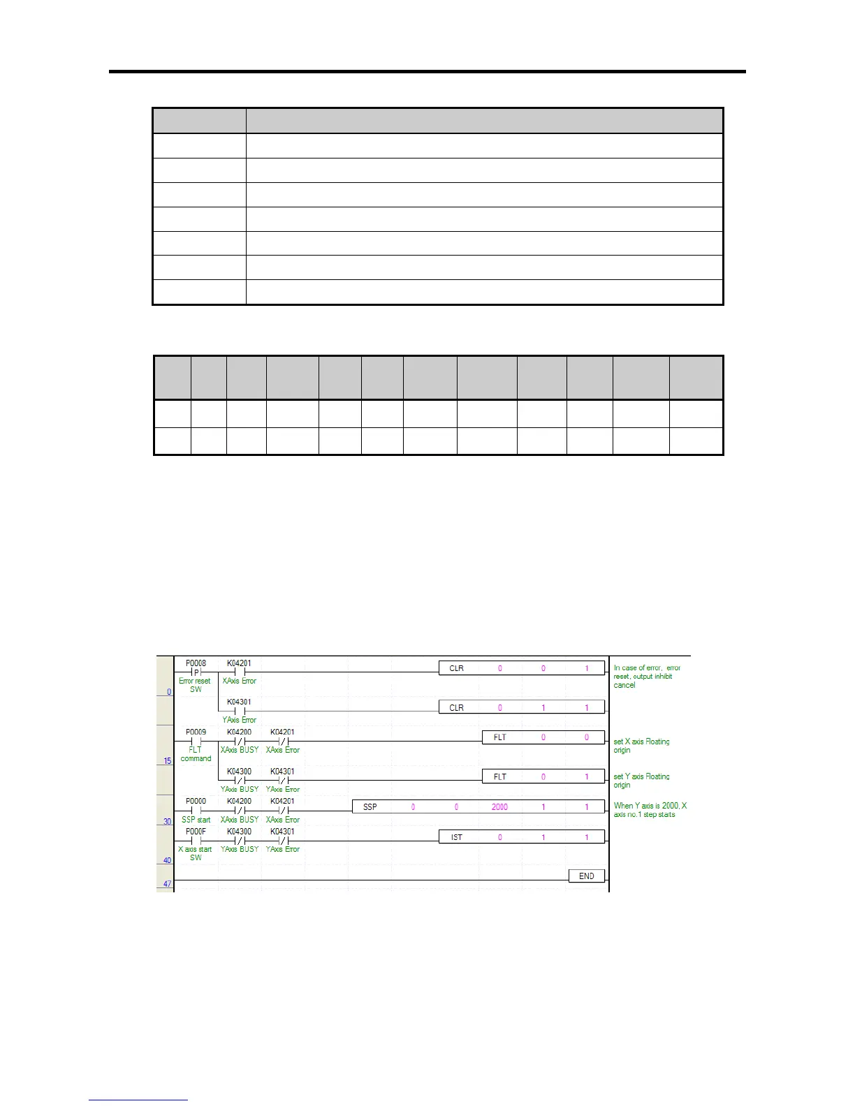•P000F/%IX0.1.6 (simultaneous start) switch On : axis X simultaneously starts step 1, and axis Y
