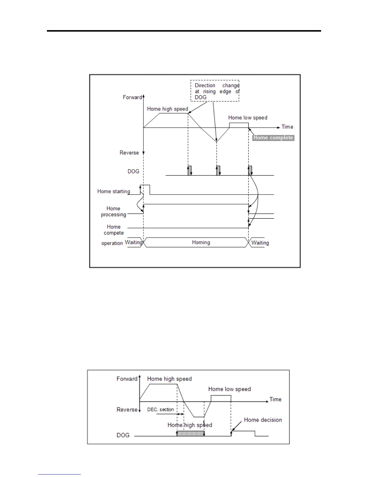 (d) In the homing status with low speed, rising edge occurs of DOG third time, it stops and