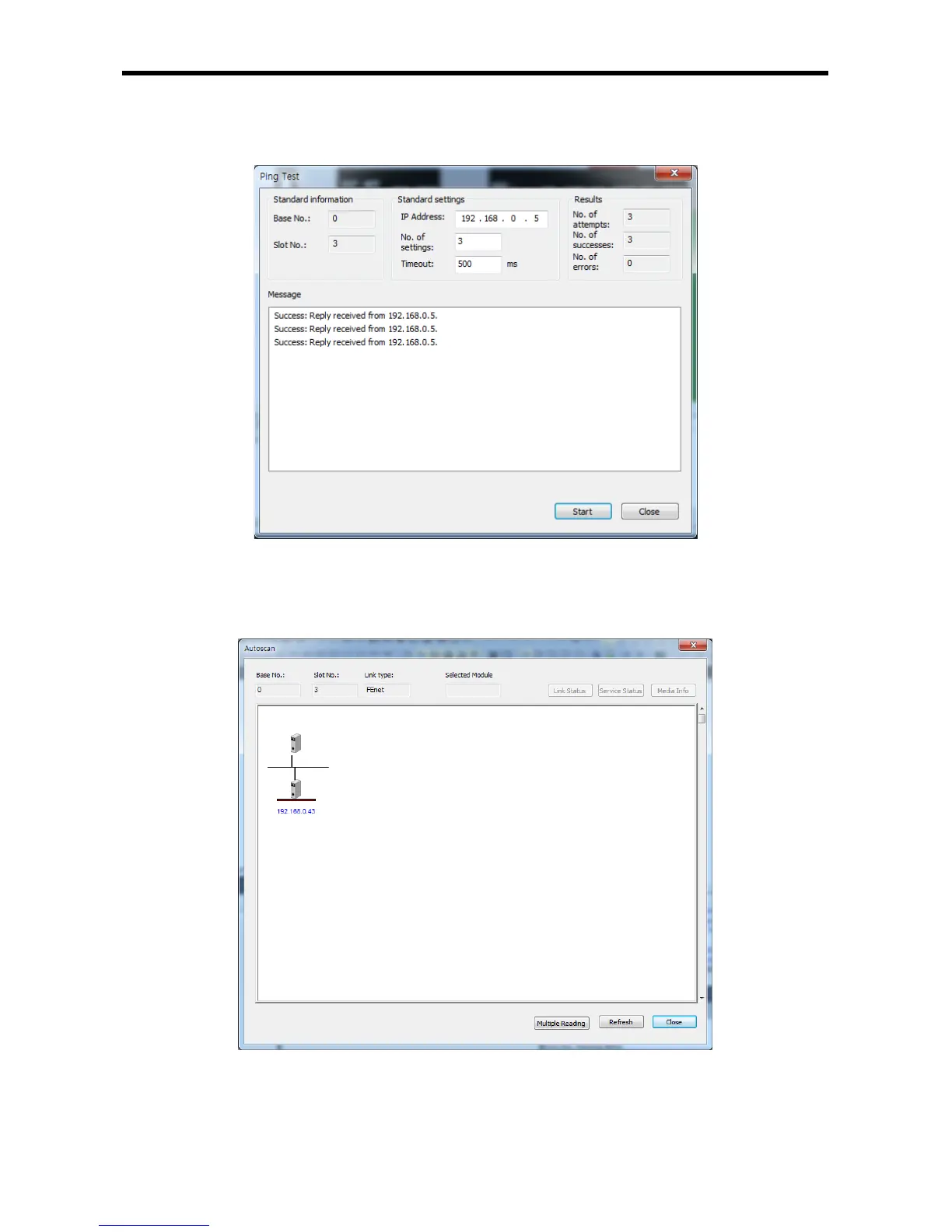 [Fig 5.6.9] Ping Test monitor for the destination station number