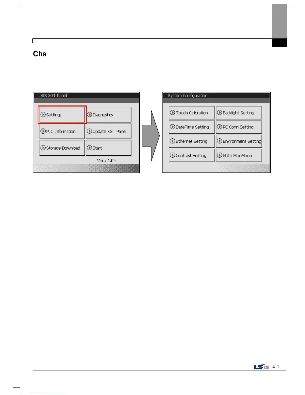 If you press [Settings] button in XGT Panel’s basic screen, you can set XGT Panel’s environment as follows.