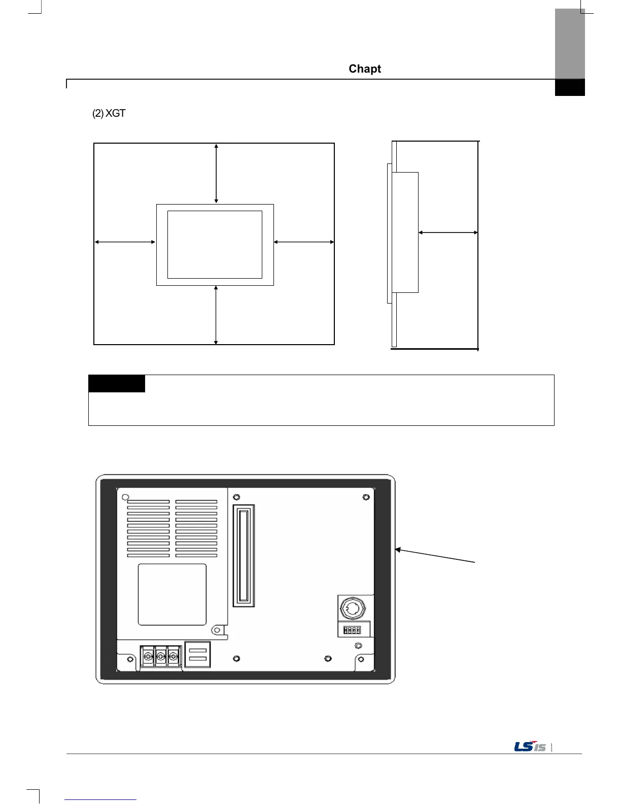 • Keep the distance of 100 mm between XGT Panel and panel per each direction.