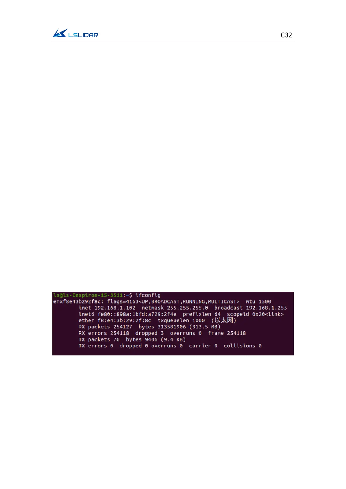 Step 4. Open the terminal: ping the lidar IP, and test whether the hardware is
