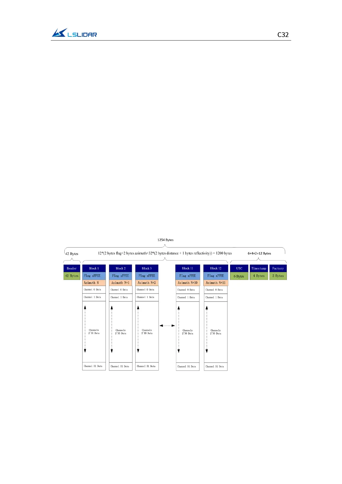 emission. A point cloud data package contains 12 data blocks, and each data