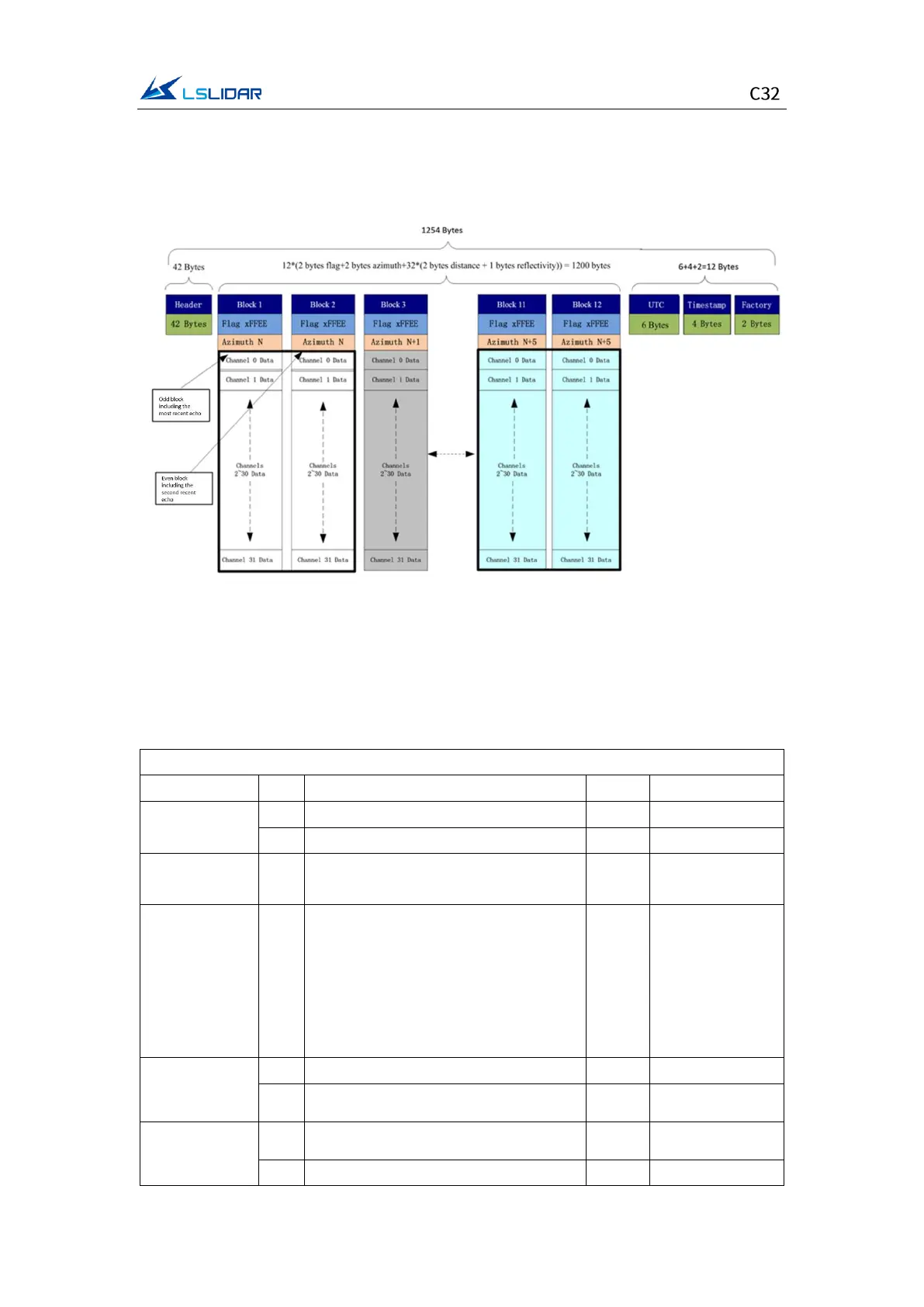 second echo data; Block (3, 4) is the two echo data of the next set of 32 point