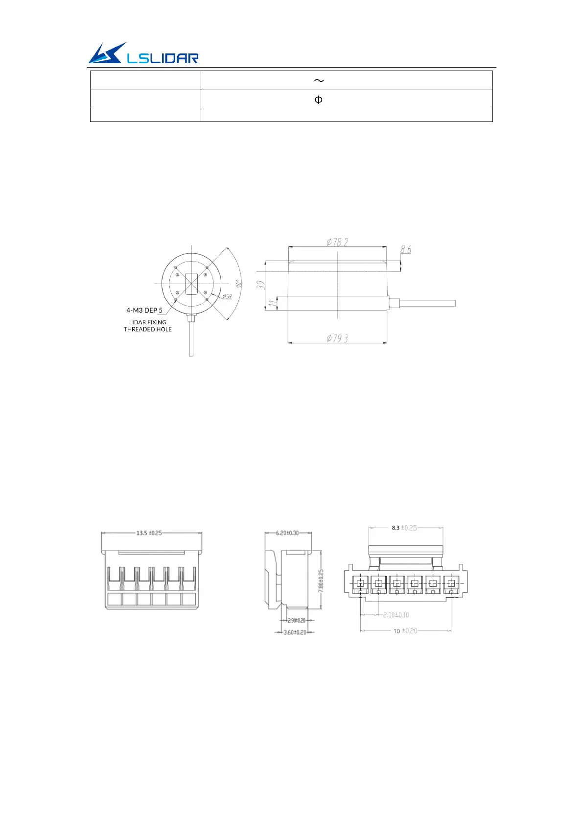 Figure 1.4 Dimensions of Lidar Base Connector (unit: mm)