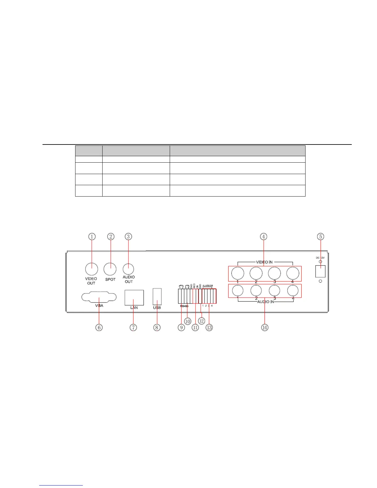 The rear Panel interface for 4-ch is shown as Fig 2.4: