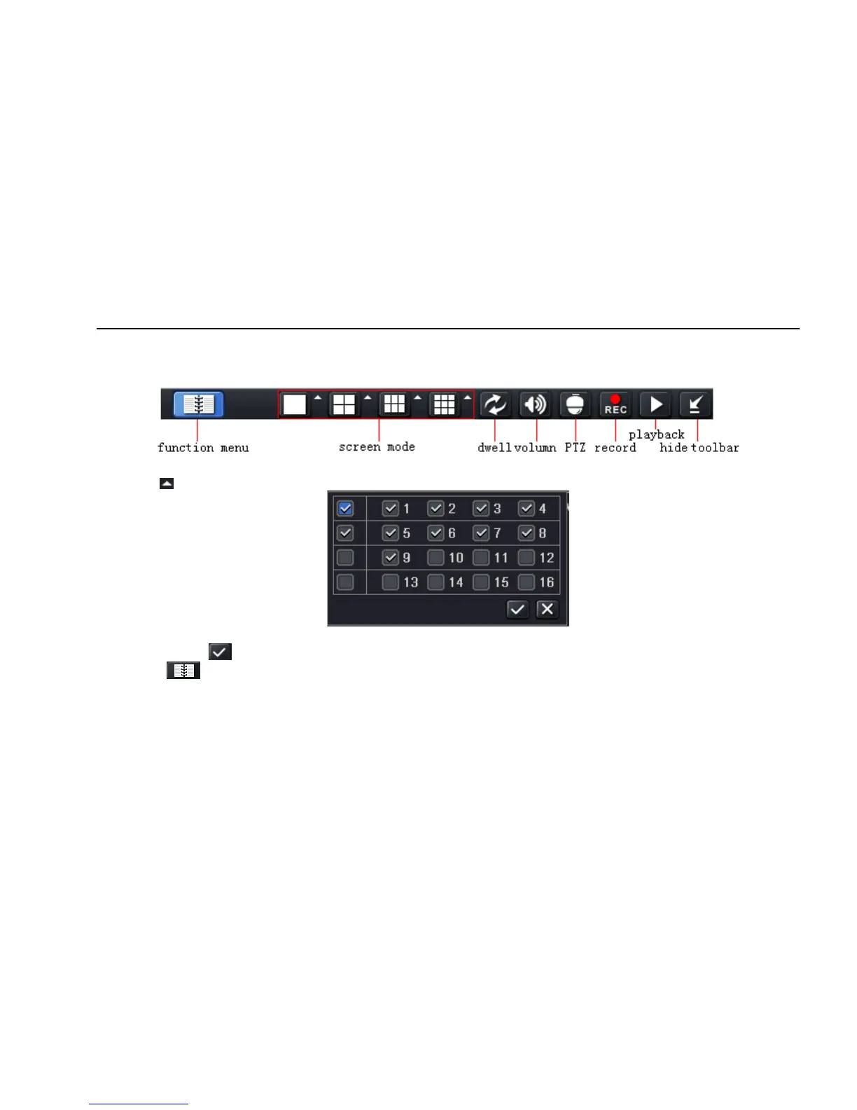 Take 8-channel DVR for example: user can tick off channels form 1-ch to 8-ch at random to display the live pictures, 8 channels can be selected