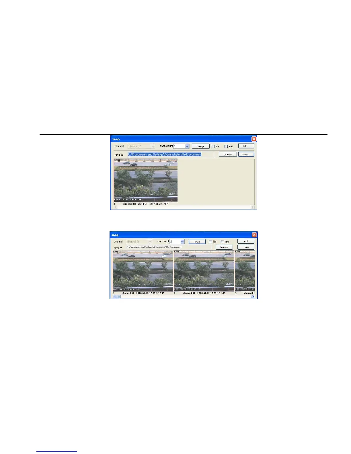 2. User can multiple pictures , select the picture number from Frame pull down list box, such as 3, tick off “Title” and “Time”, it will show capture