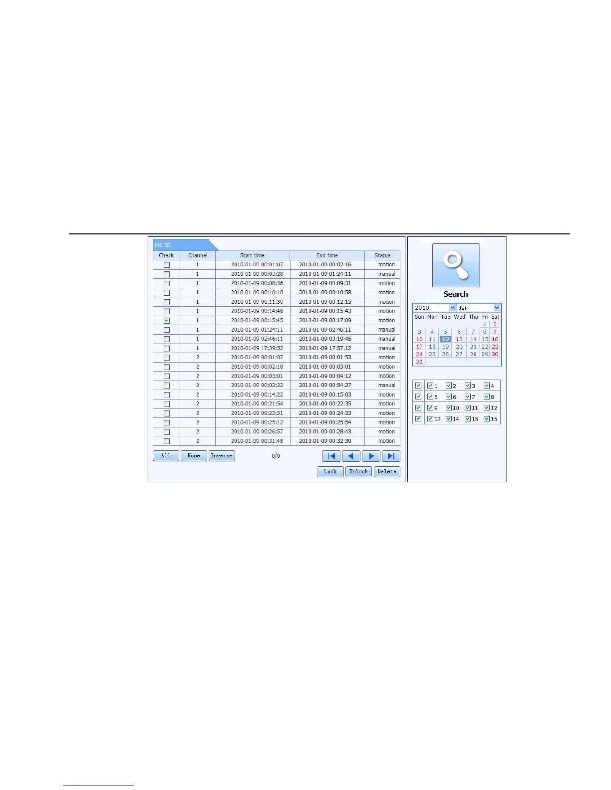 Lock: select certain file item in the file list box, click “Lock” button to lock this file that ca not be deleted or overlaid