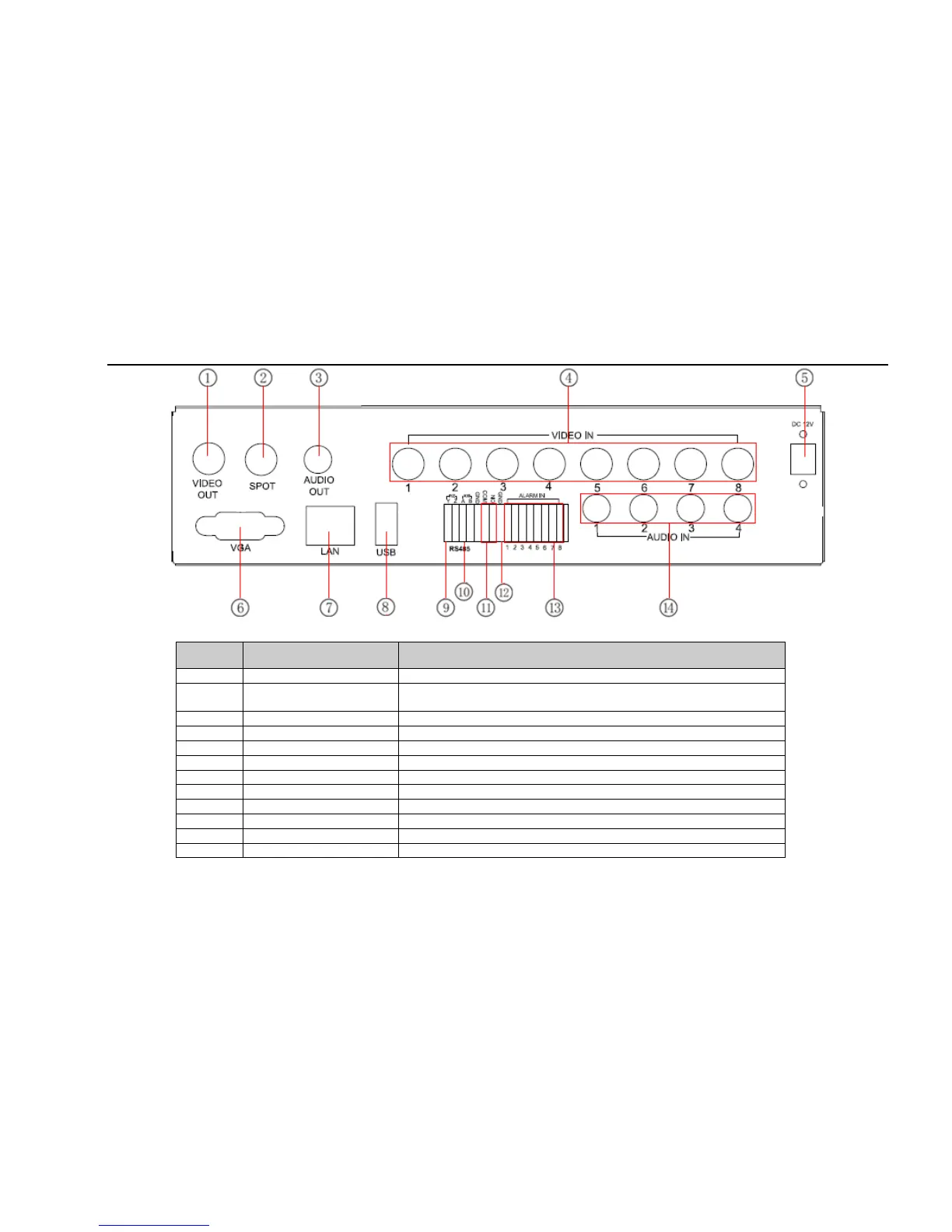 11 ALARM OUT 1-ch relay output. Connect to external alarm