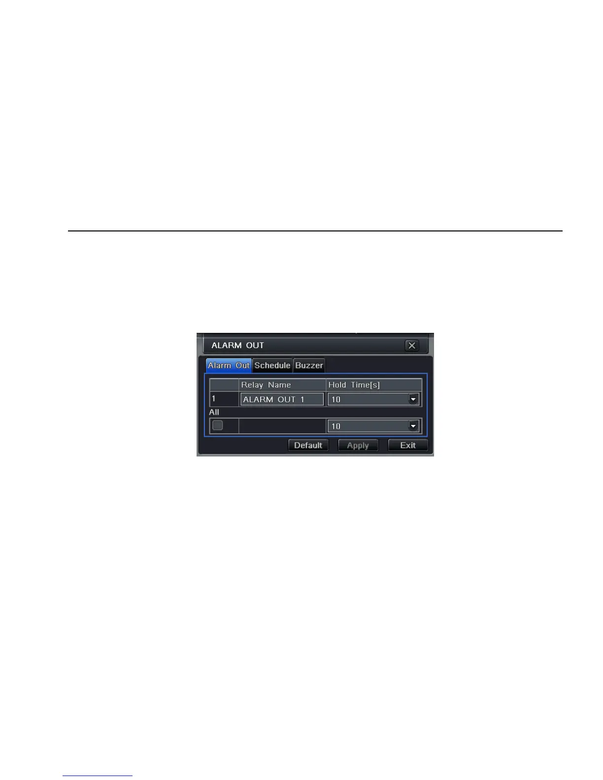Step2: in this interface, set relay alarm out name, select hold time which means the interval time between the two adjacent alarms.