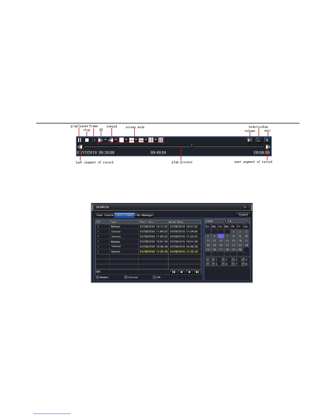 Note: when the monitor resolution is VGA800*600, the time search interface will appear a hide button, click this button, the whole