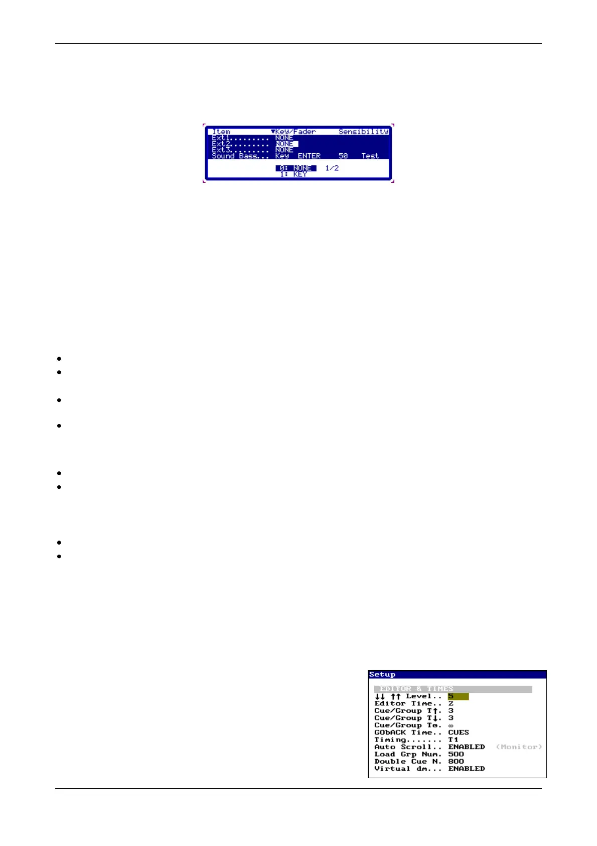 Select the option: 1: KEY/FADER. Systems waits that you press a key or you move a fader