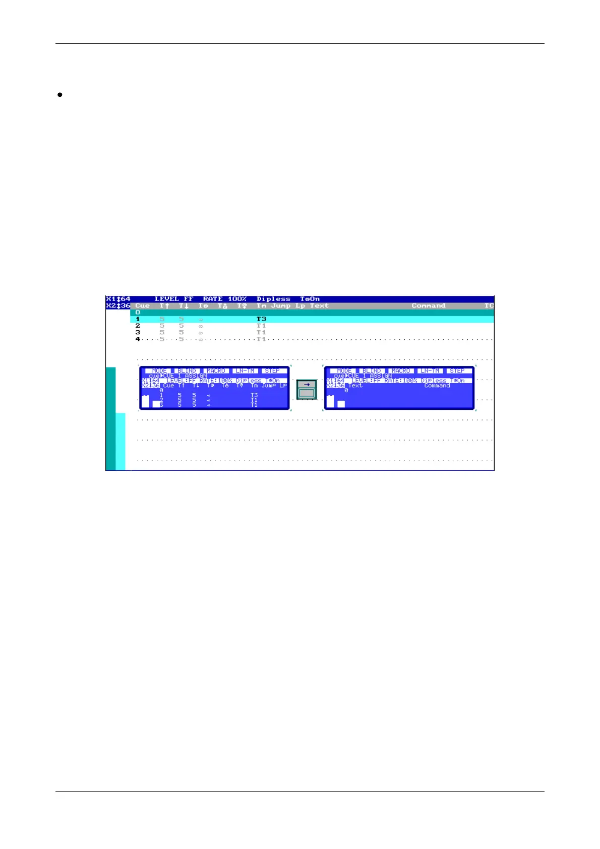 [CUE] [#] [THRU][#][LOAD] [S#]