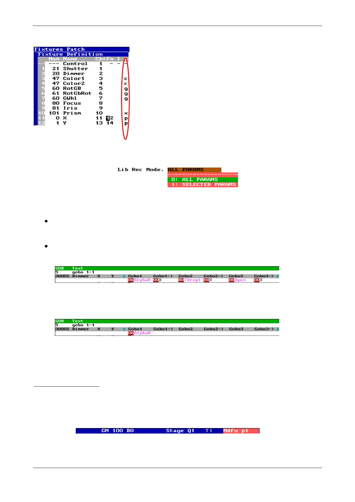 Exam of this same gobo library stored in mode: SELECTED PARAMS