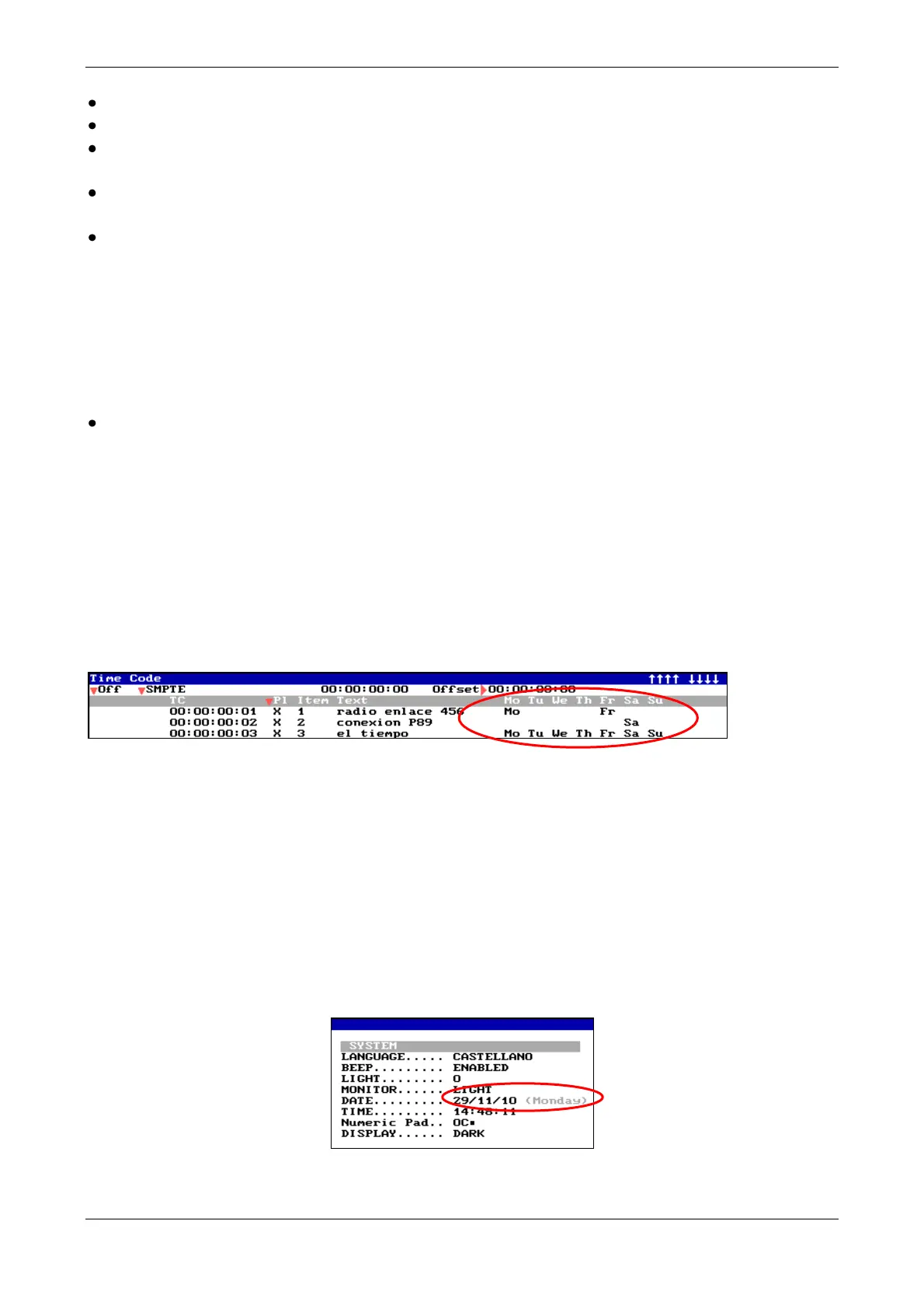 Playing back time code TC, only the events programmed for the day will shown in base screen.