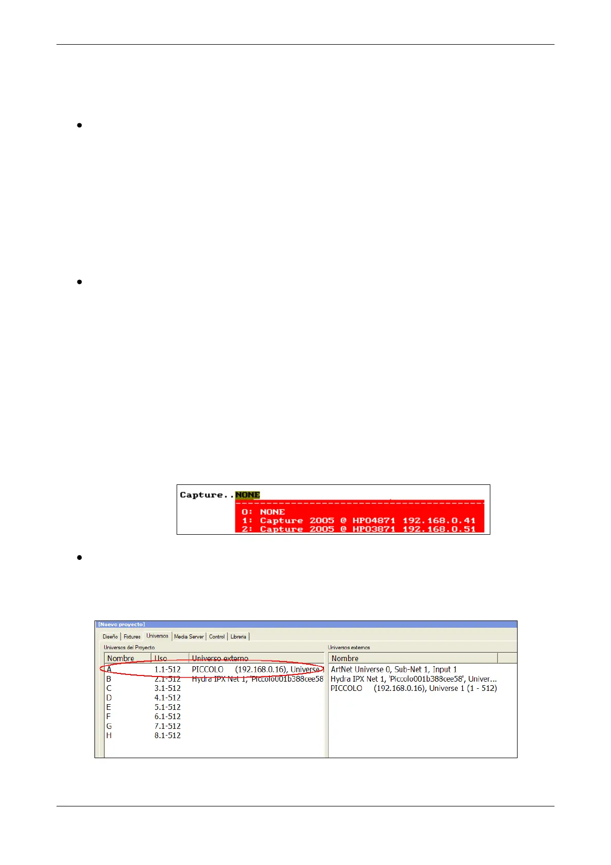 Capture fixtures, to control with Piccolo fixtures, must have channel numbers, in Capture, from the
