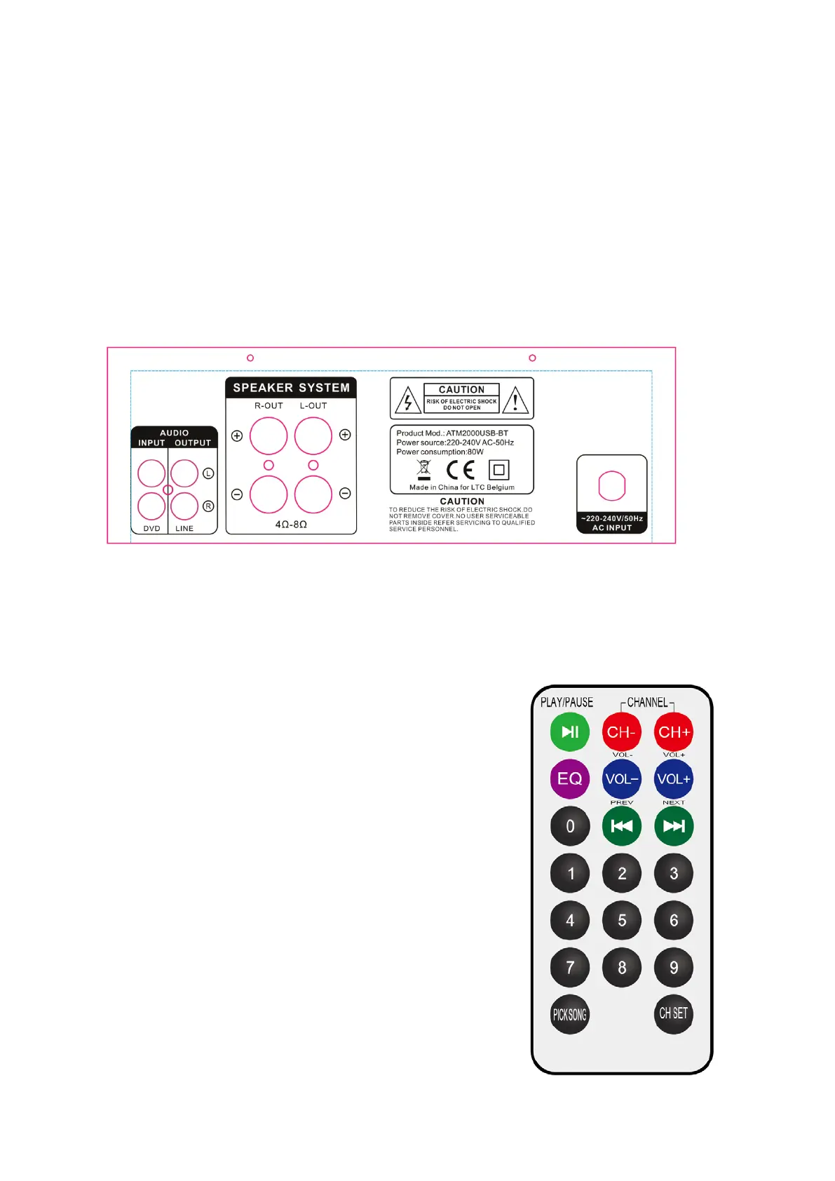 Speakers Outputs: Povežite tukaj zvočnike za sprejem signala iz ATM2000USB-BT