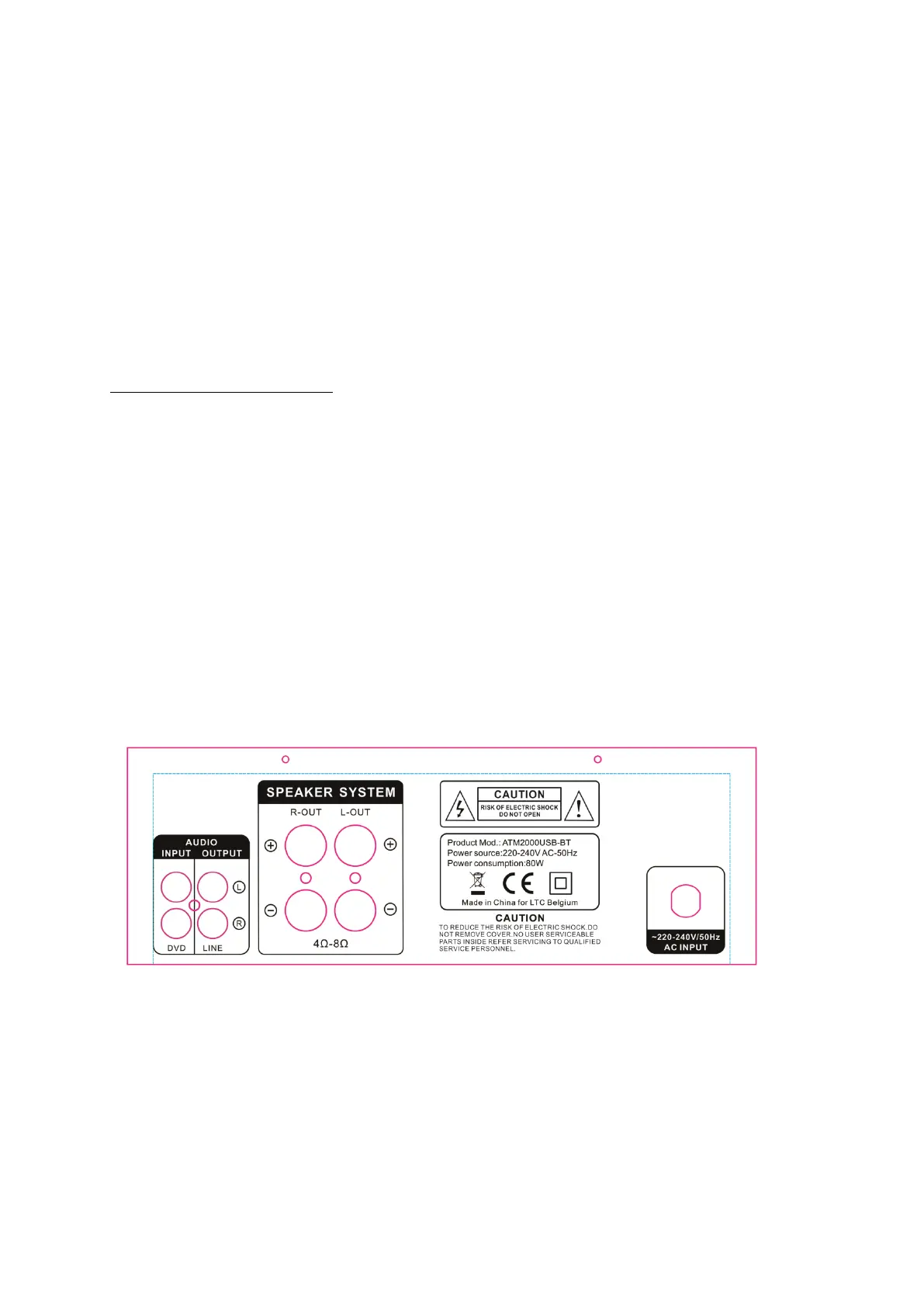 LINE OUTPUT: Zum Anschluss an den Eingang eines anderen Verstärkers oder Aktivlautsprechers.