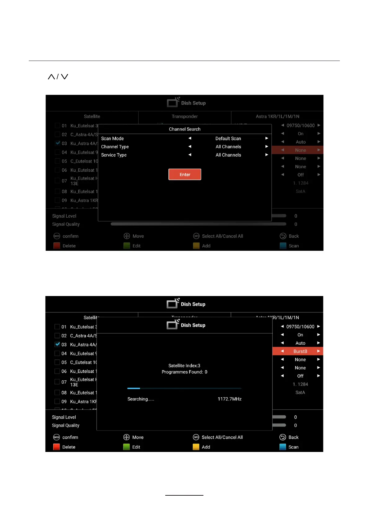 When you select a satellite, after setting the parameters, press the blue button to enter search