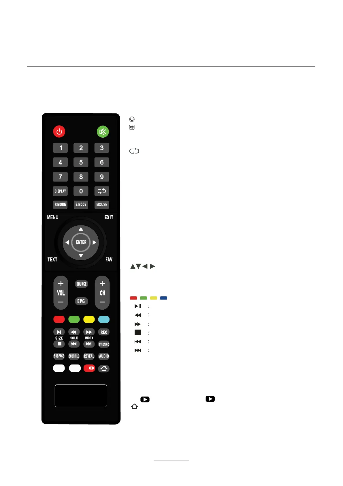 0--9:Press 0-9 to select a TV channel directly while watching TV.