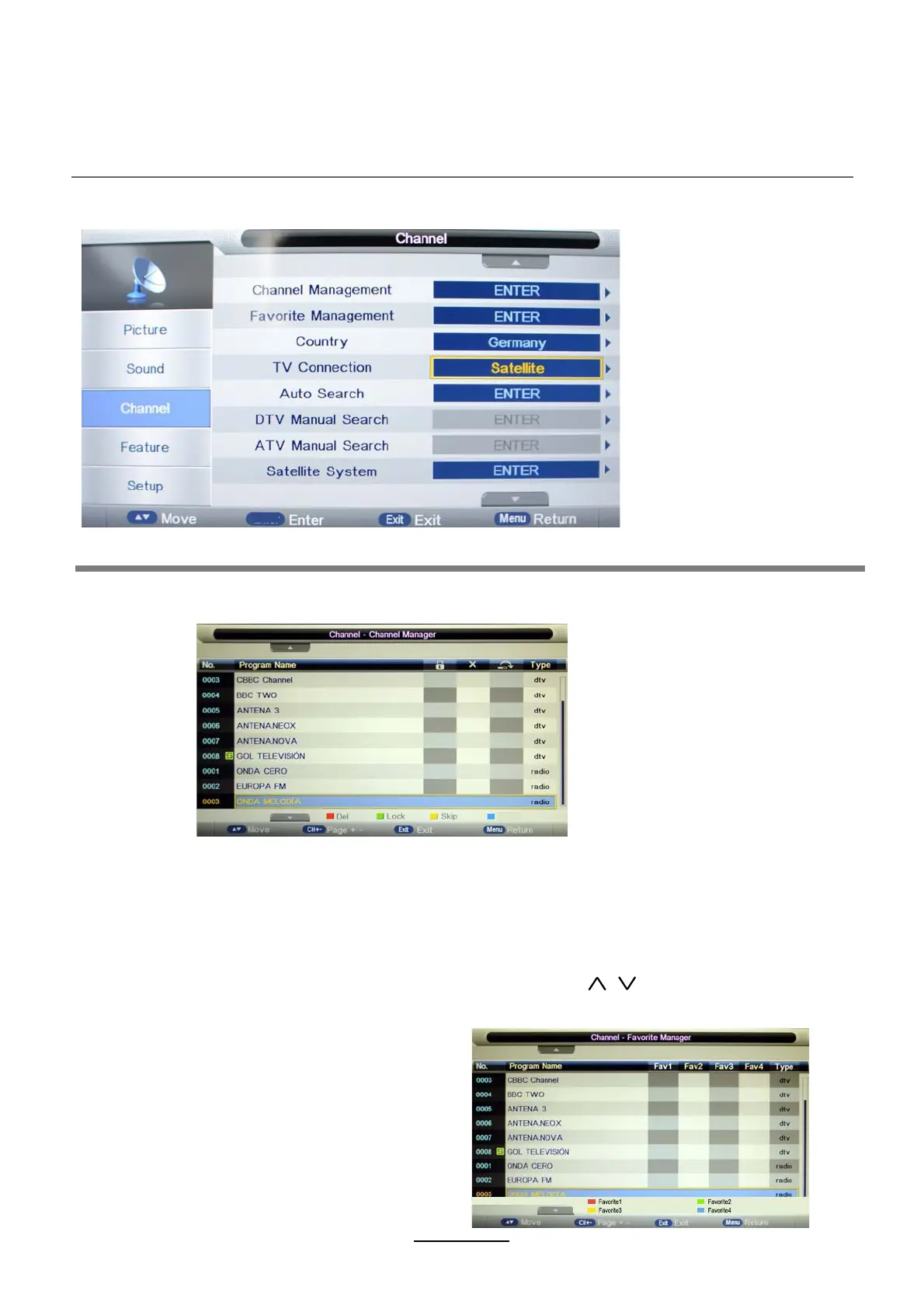 Kanalredigering: Gå till menyn Kanalredigering (Channel management) för att redigera kanalerna.