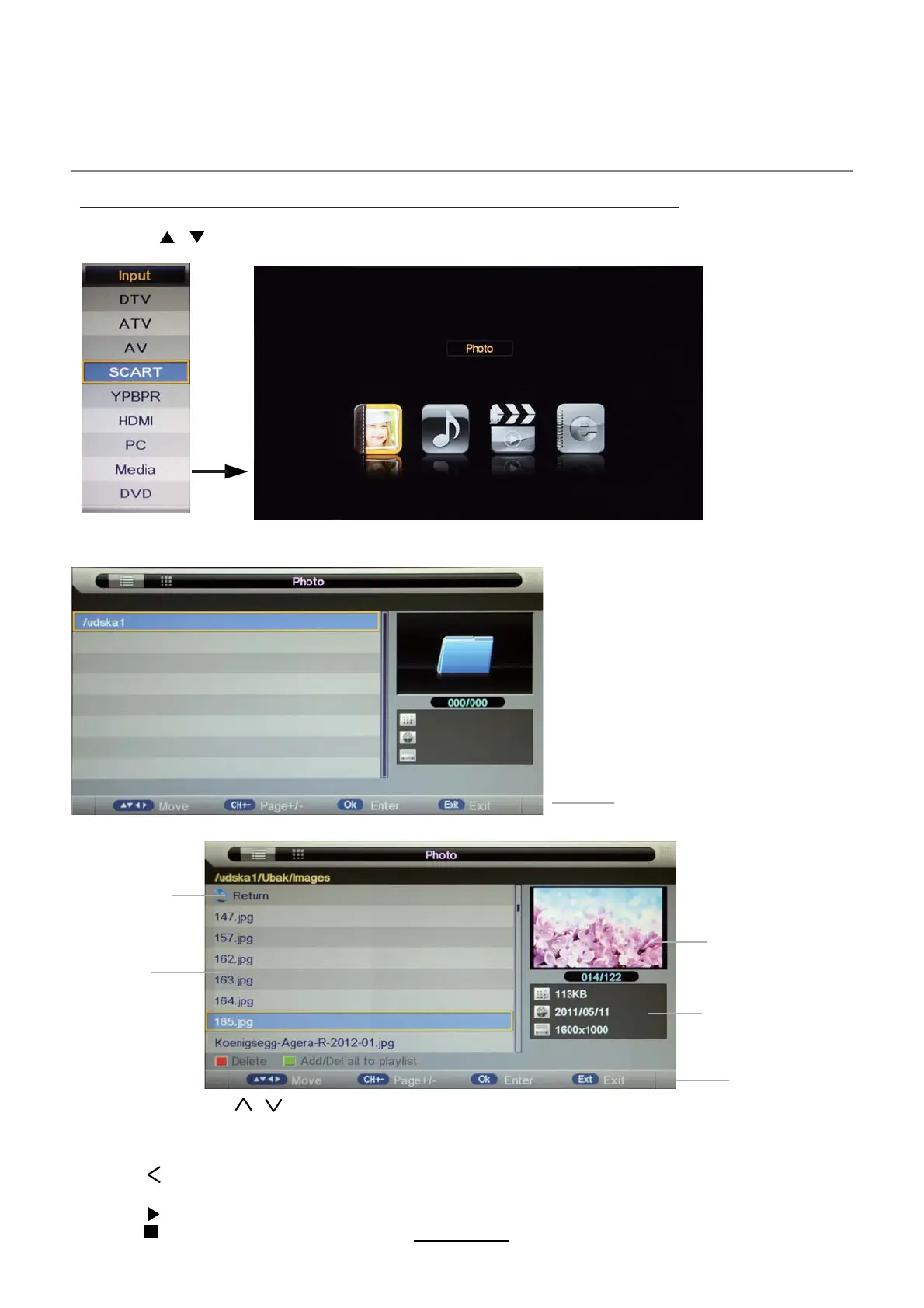 Använd pilknapparna / för att flytta (tryck OK för att välja en fil eller en mapp);