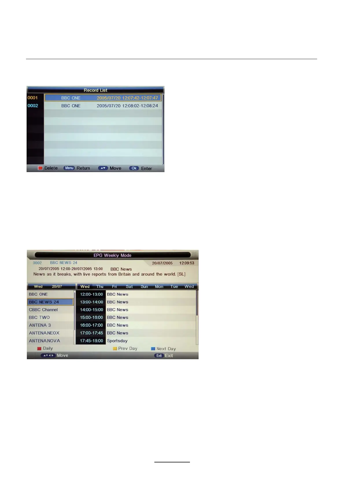 EPG-läge: Tryck RÖD knapp för att ändra EPG visningsläge.