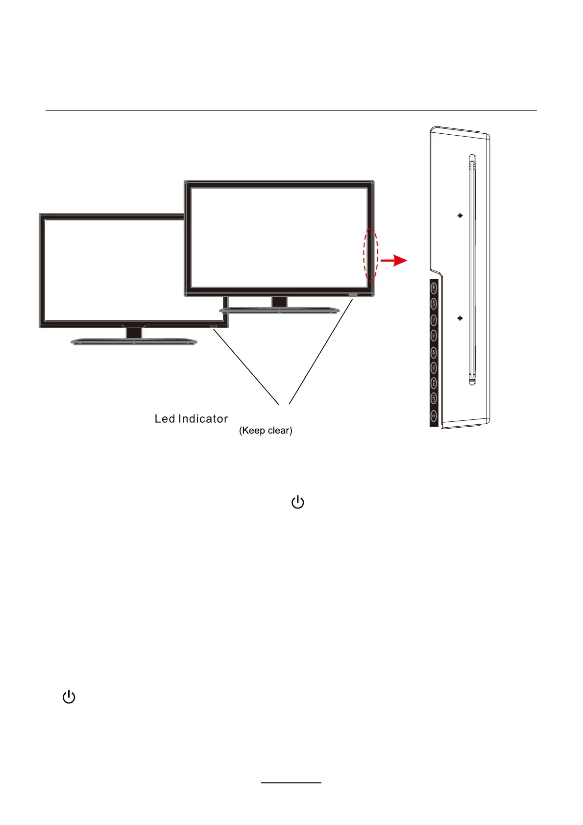 (Power on/Standby) LED indicator: Press to turn on and standby.