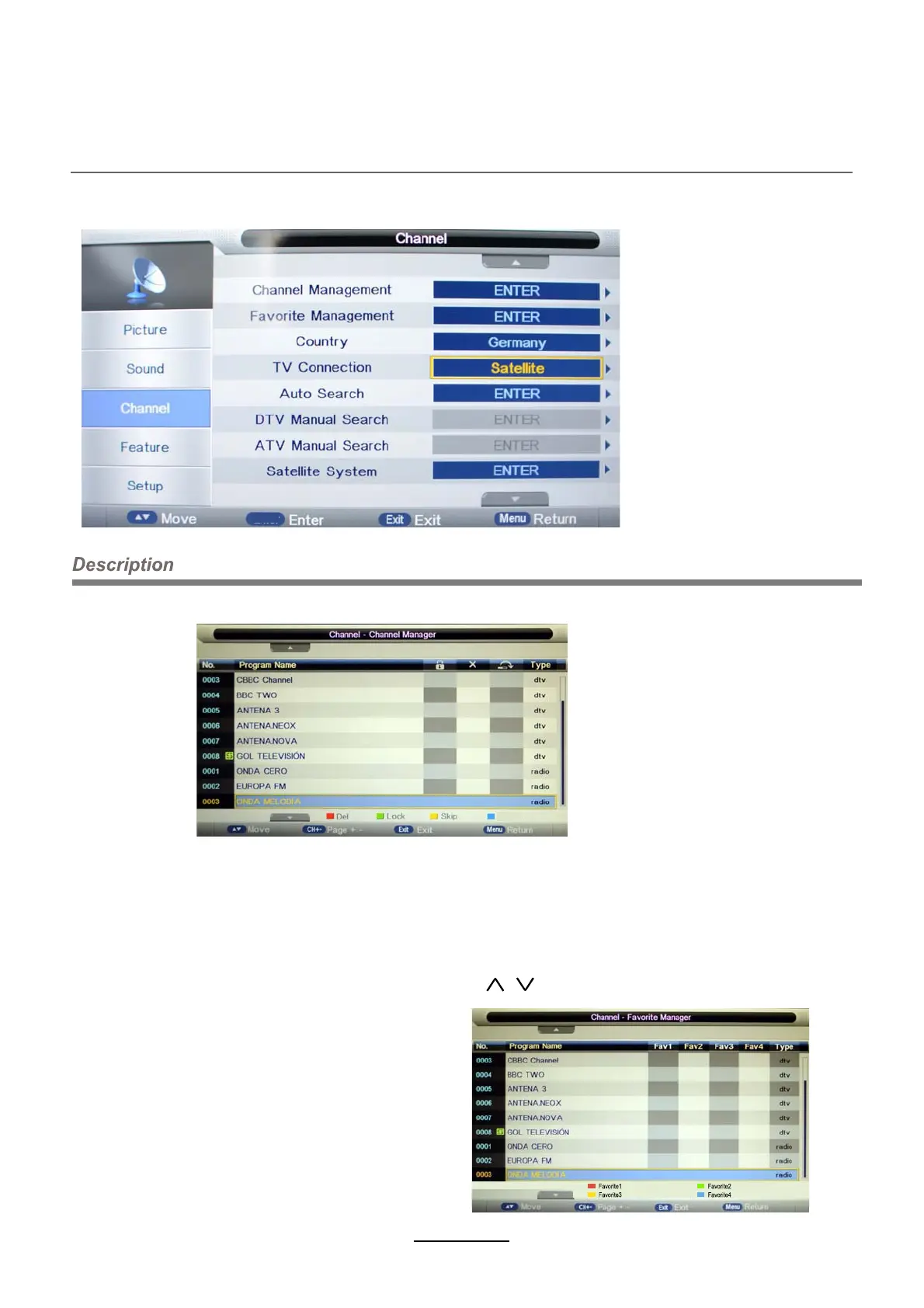 BLUE button to sign the channel, press / button to move, and press OK button to