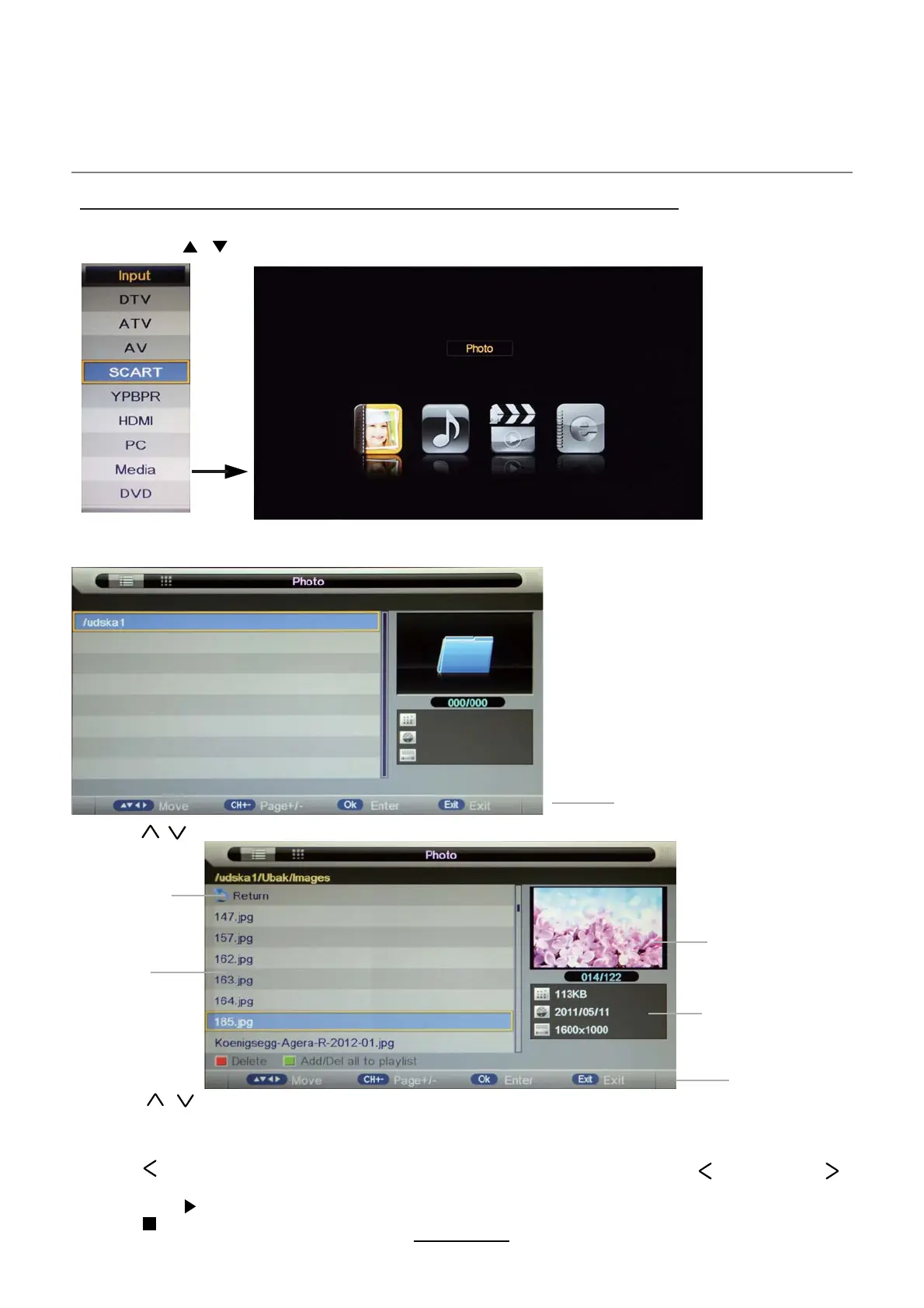 Press button to previous menu, Press EXIT button to select the file view type list( ) or thurnbnail( ).