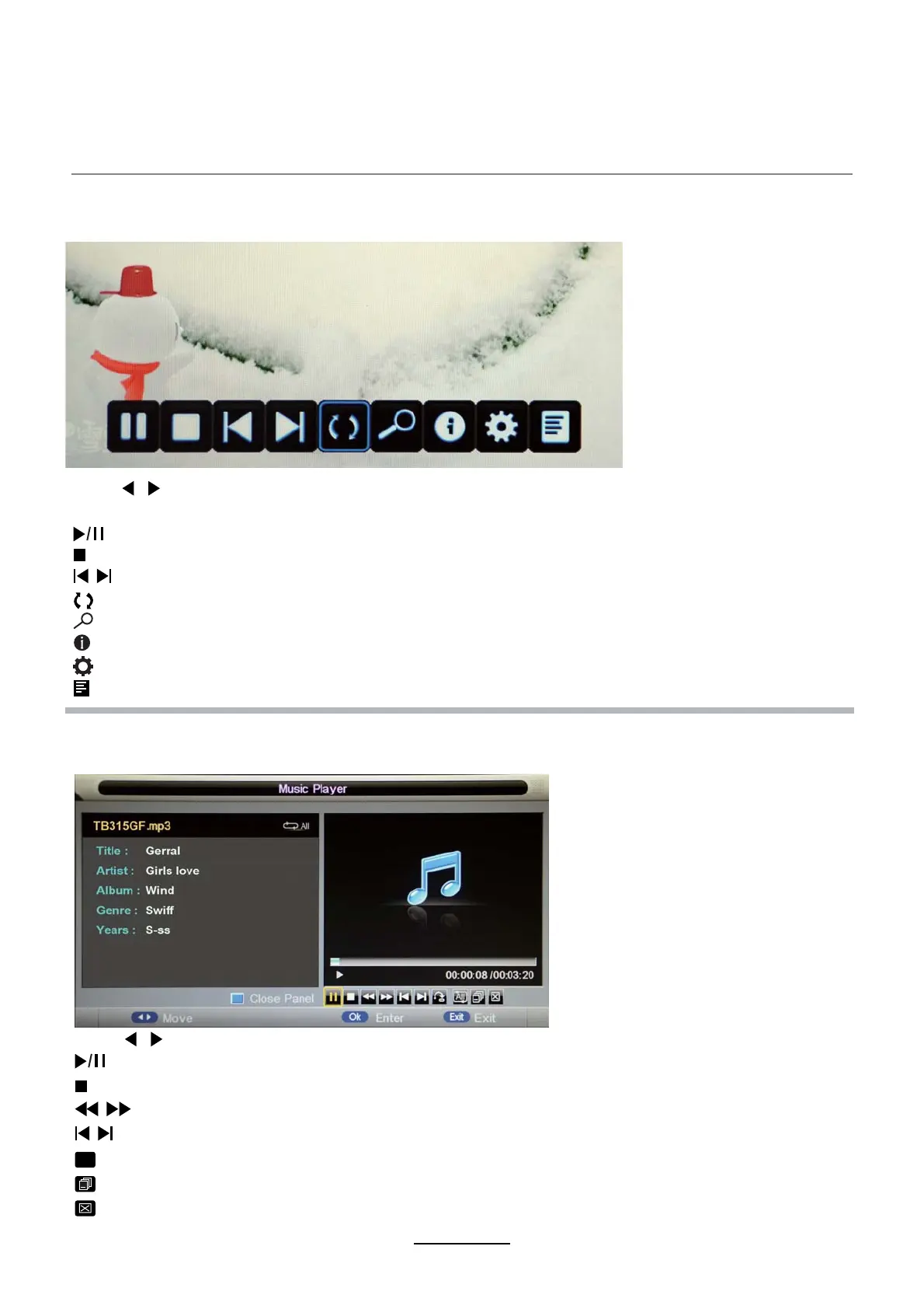 Display the photo setup menu, and select the Repeat mode, Background Music, Slide Time, Effect.