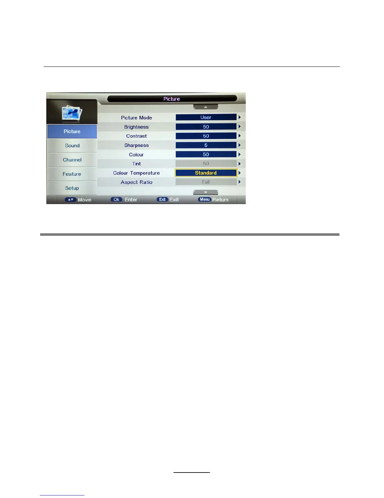 Skärpa: Justera skärpan i bilden (Grått i VGA/PC läge fungerar ej).