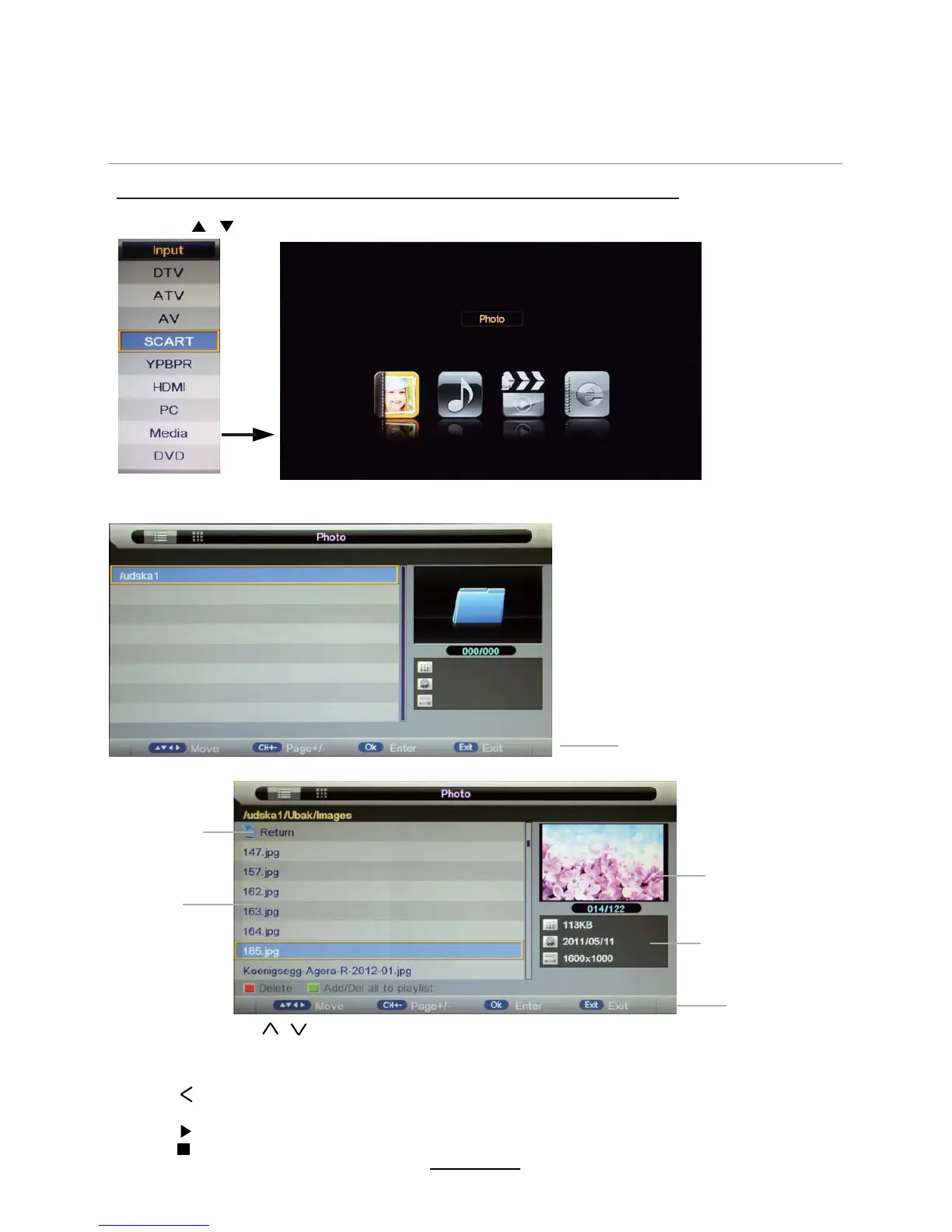 Använd pilknapparna / för att flytta (tryck OK för att välja en fil eller en mapp);