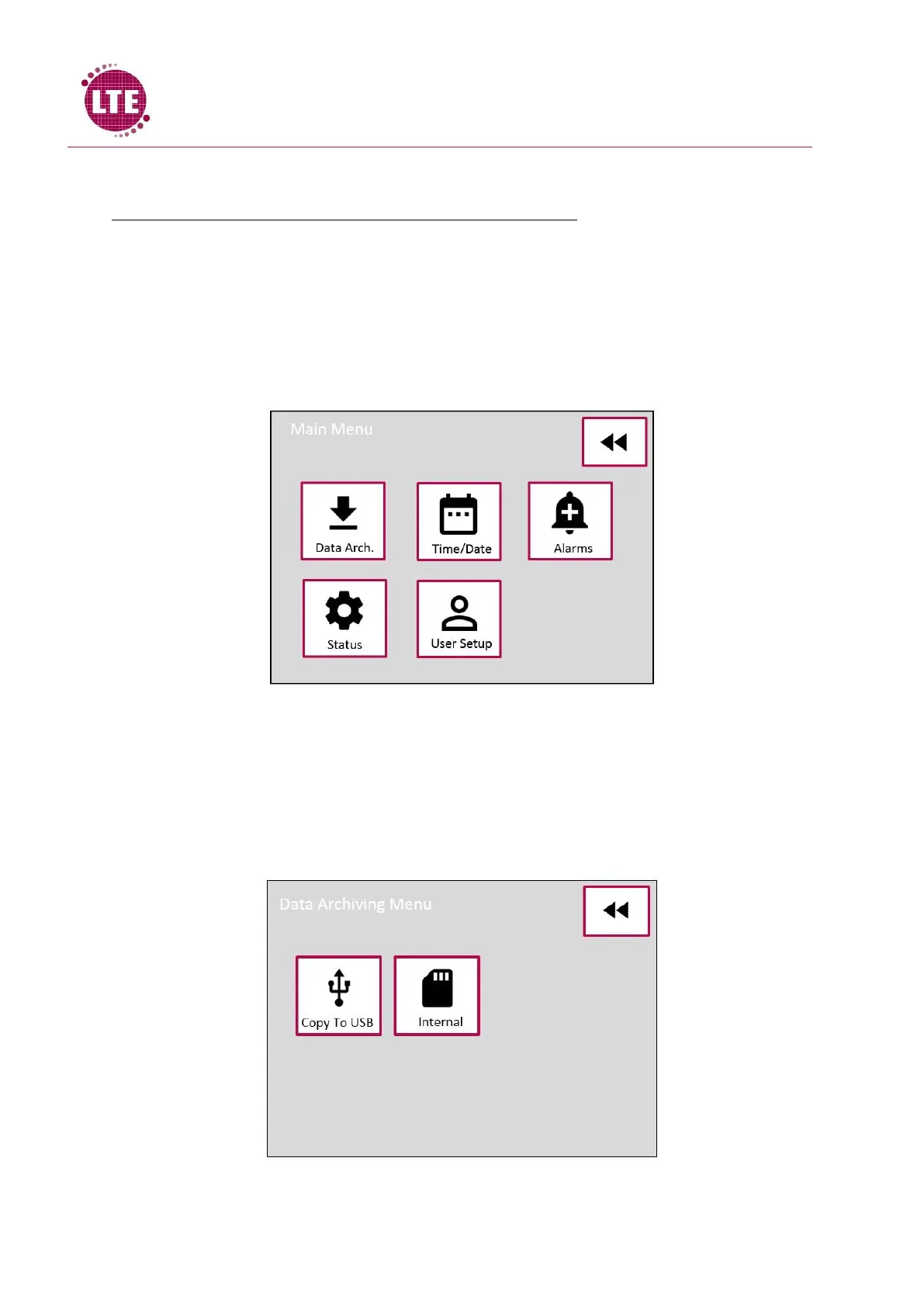 The data archiving menu will allow the user to save the machine cycle data onto a USB memory stick