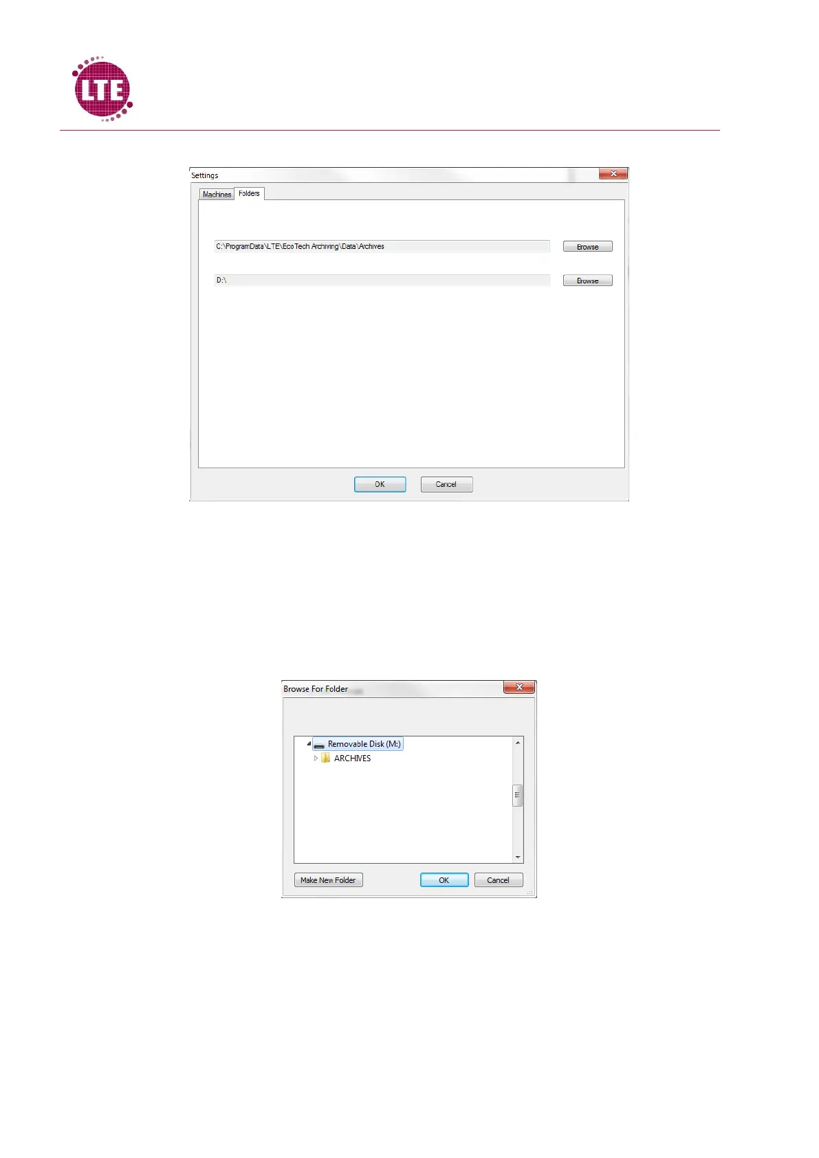 archives to be stores. If the PC is connected to a network, a folder can be created on a