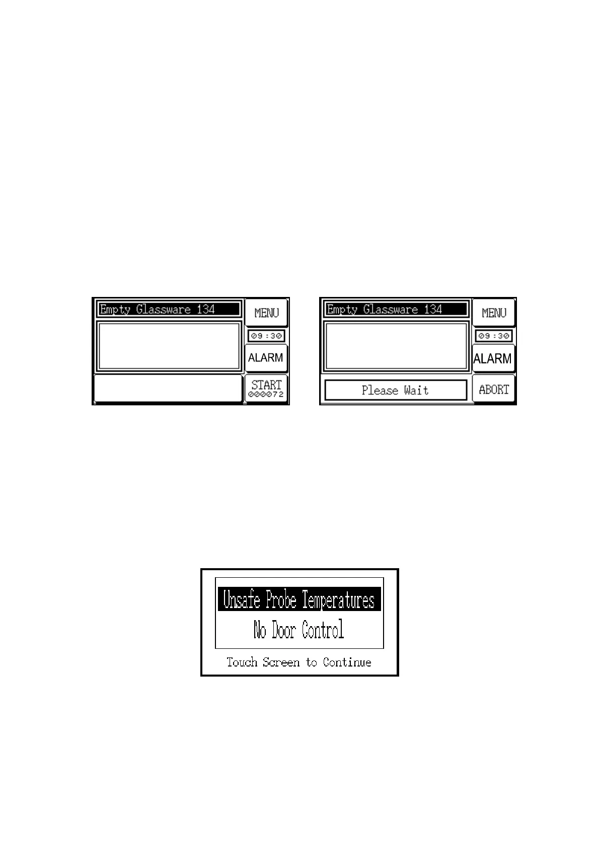 screen shown below for ‘Unsafe Probe Temperatures’ prevents the door from being opened if