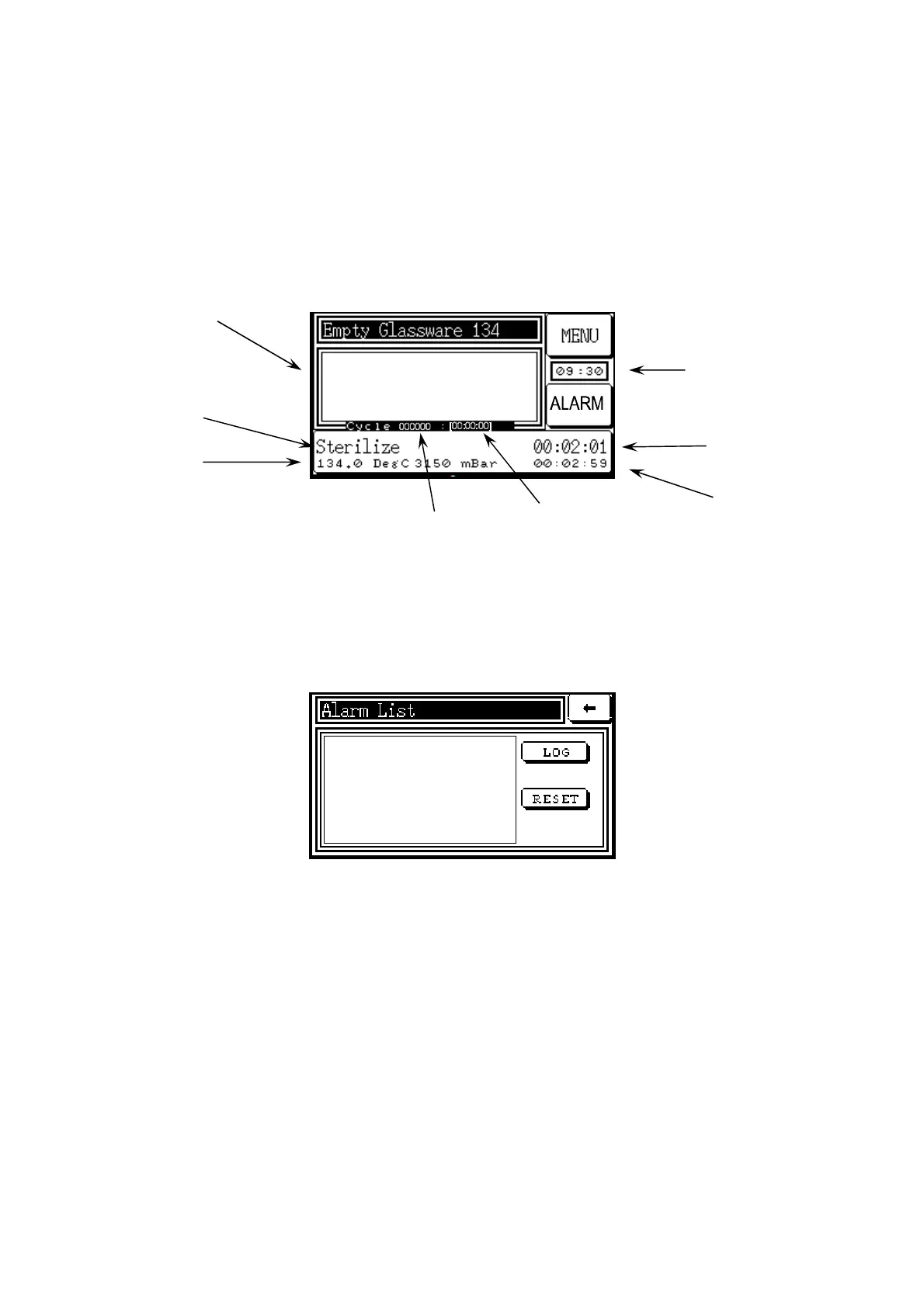 The LOG button is used to record all the faults which have occurred since the autoclave has